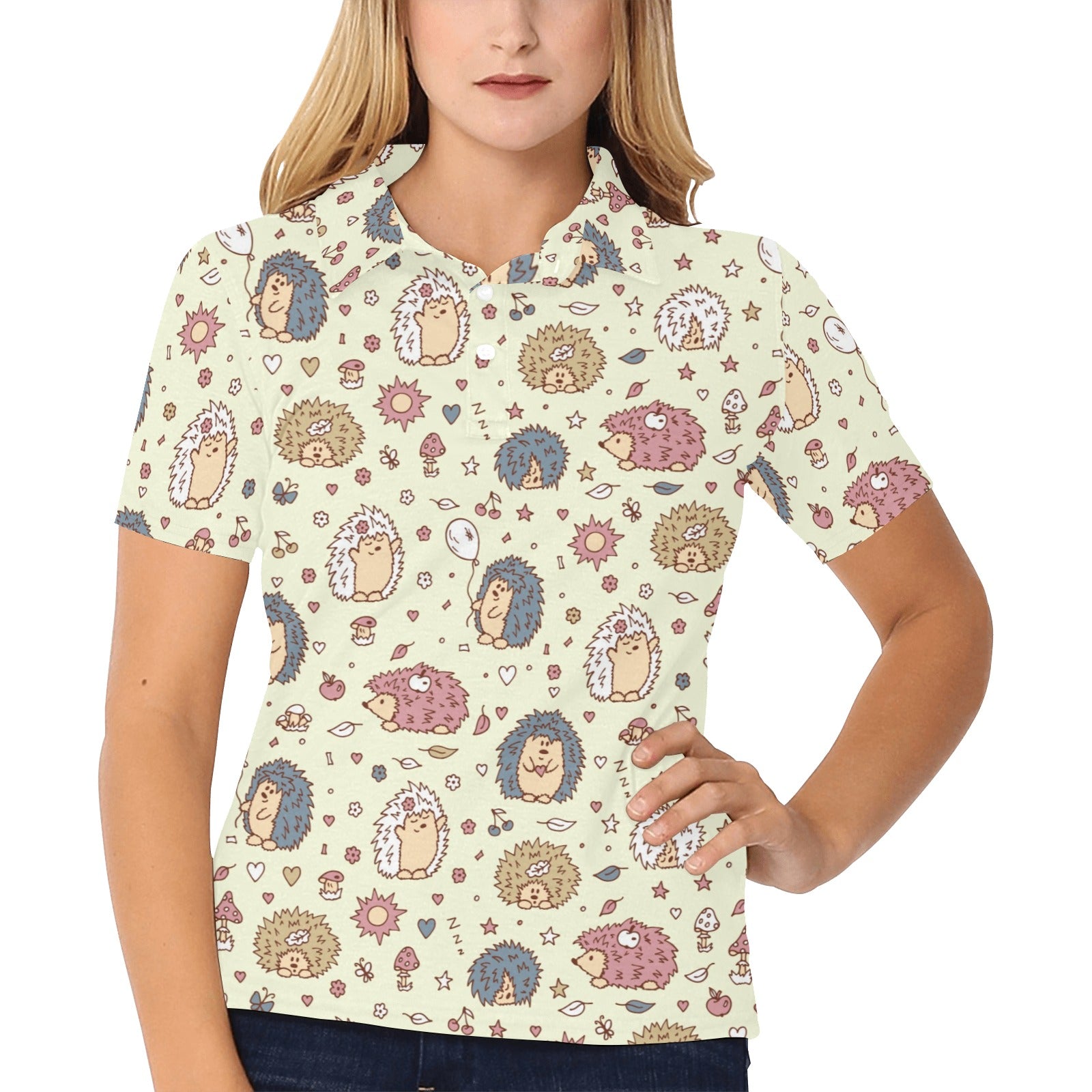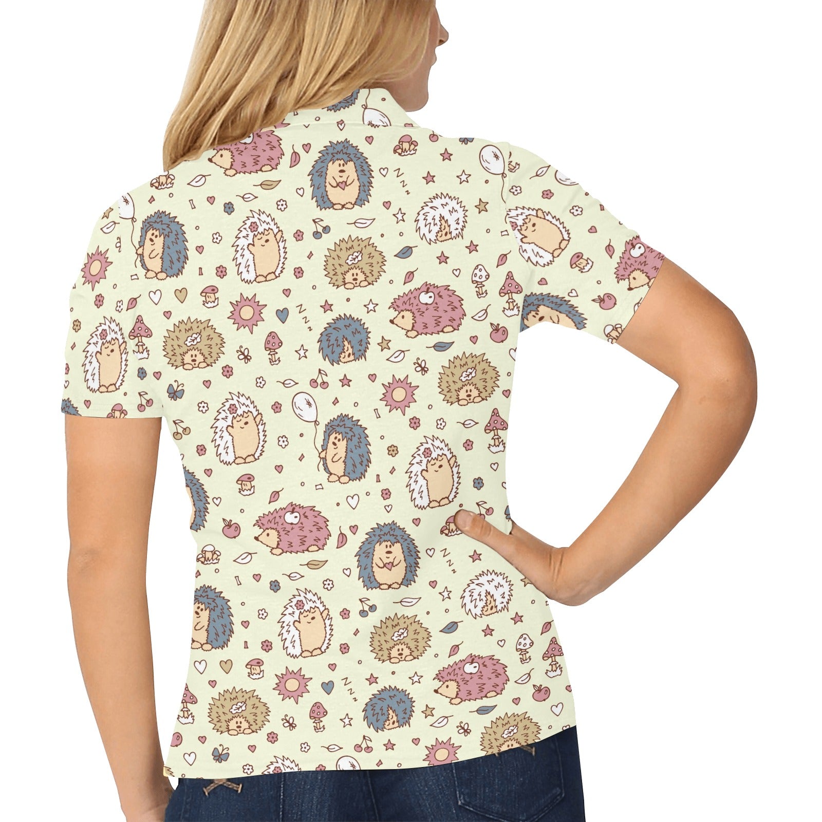 Hedgehog Cute Pattern Print Design 01 Women's Polo Shirt