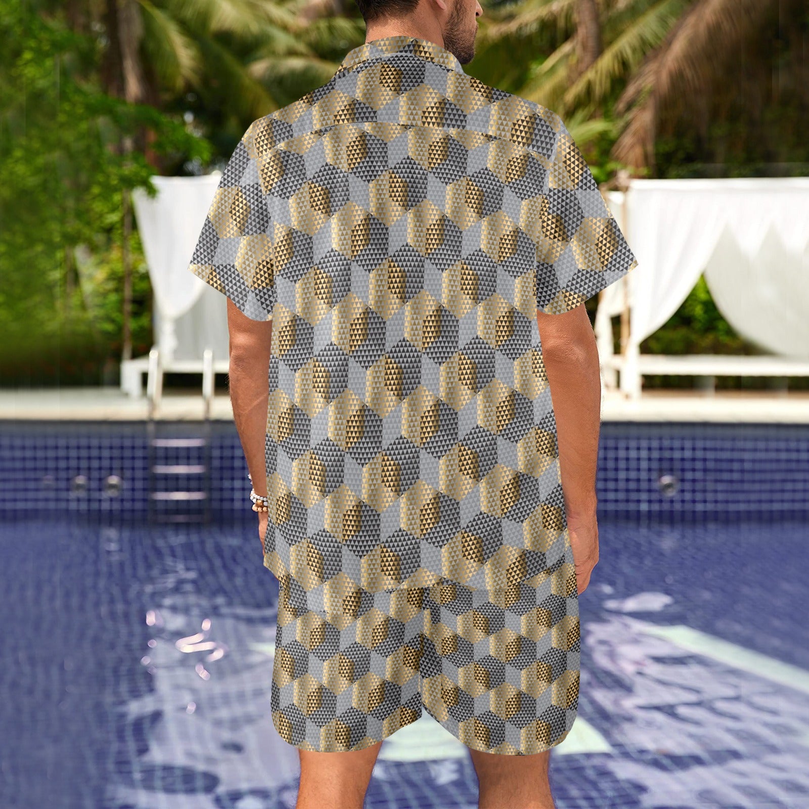 Hexagonal gold black Design Print Pattern JJ0343 Men's Beach Shirt and Shorts Set