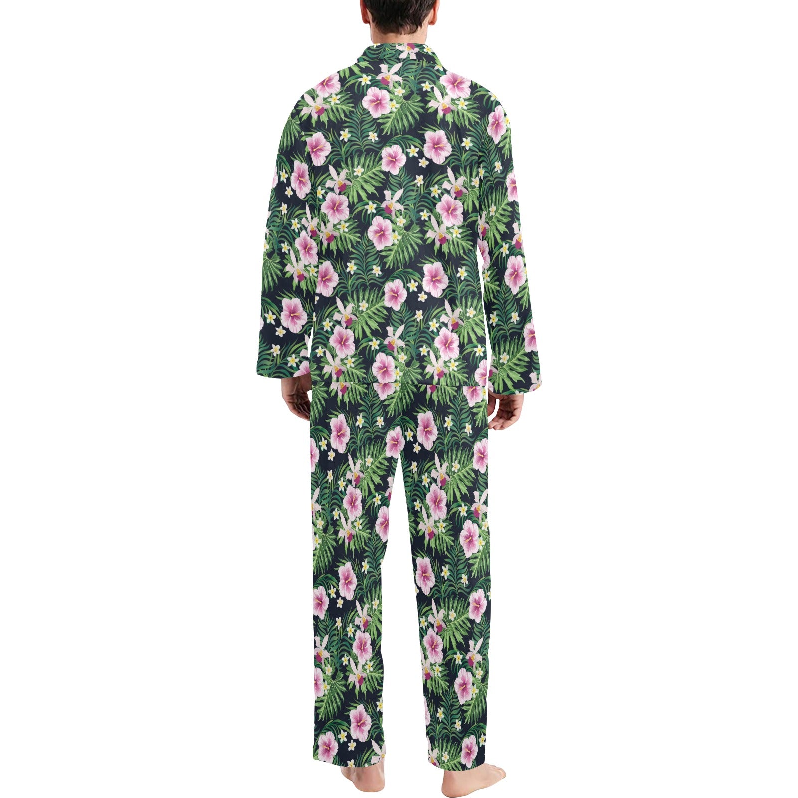 Hibiscus Tropical Print Design LKS309 Men's Long Pajama Set custom-made-to-order and handcrafted to the highest quality standards.