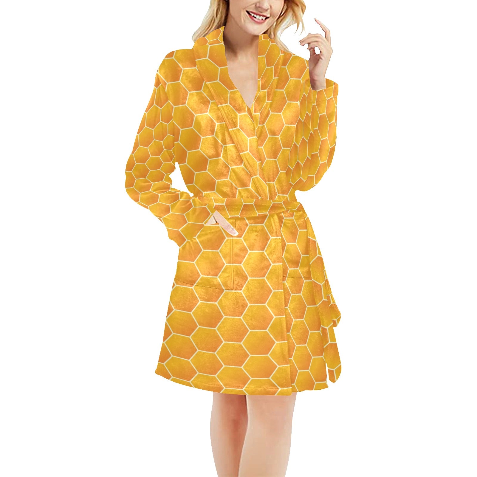 Honey Bee Honeycomb Print Design LKS3011 Women's Fleece Robe