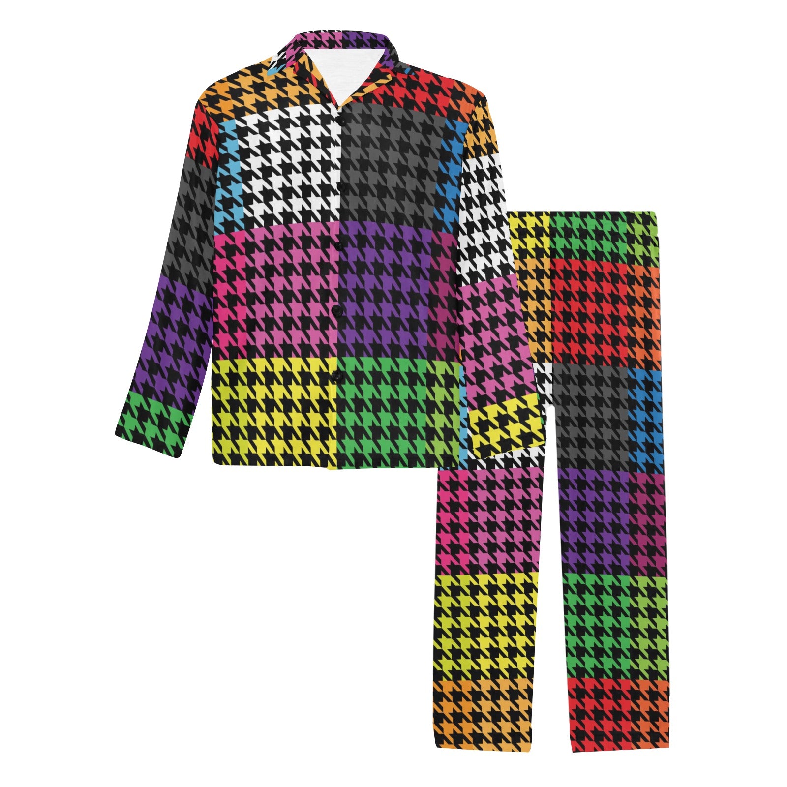 Houndstooth Colorful Pattern Print Design 01 Men's Long Pajama Set custom-made-to-order and handcrafted to the highest quality standards.