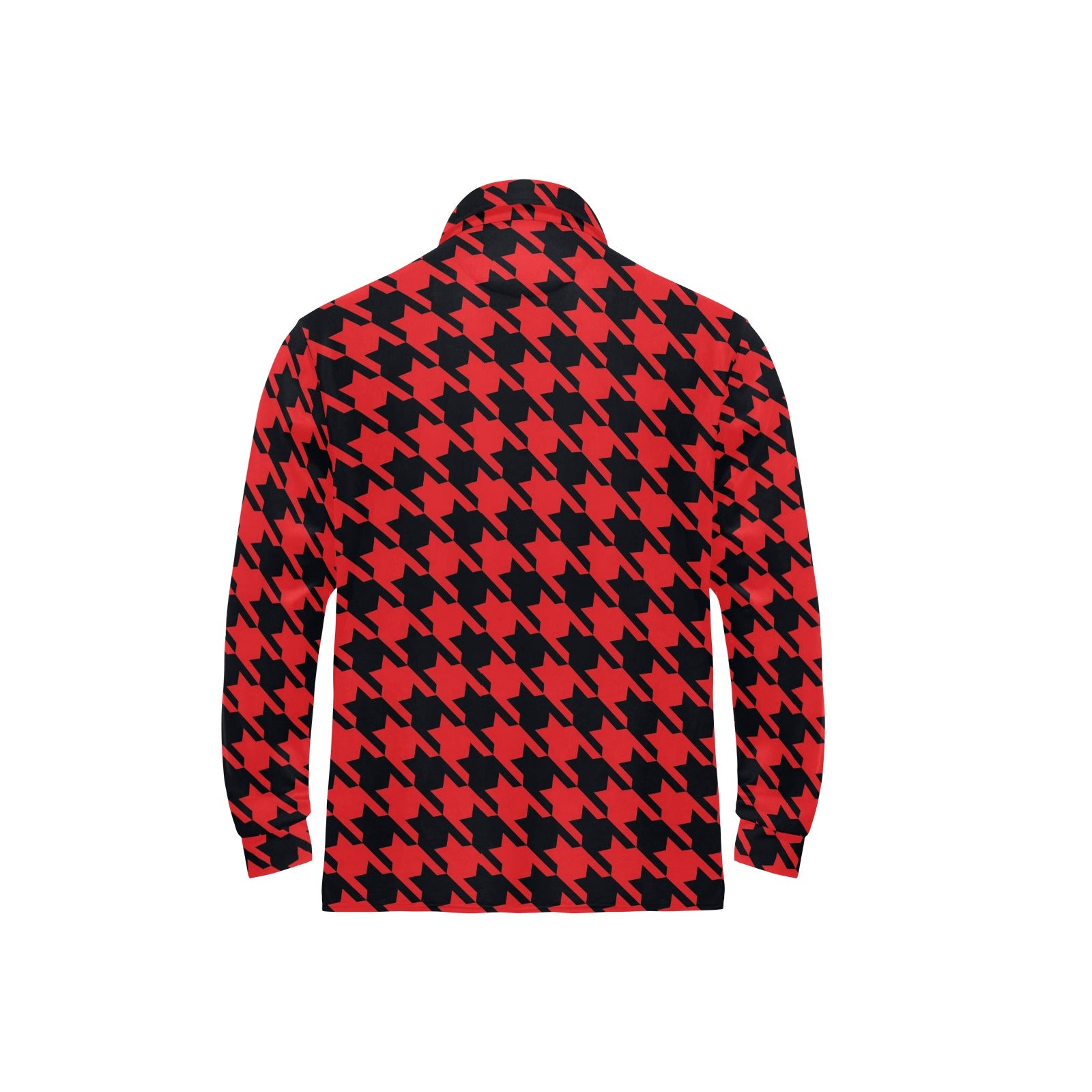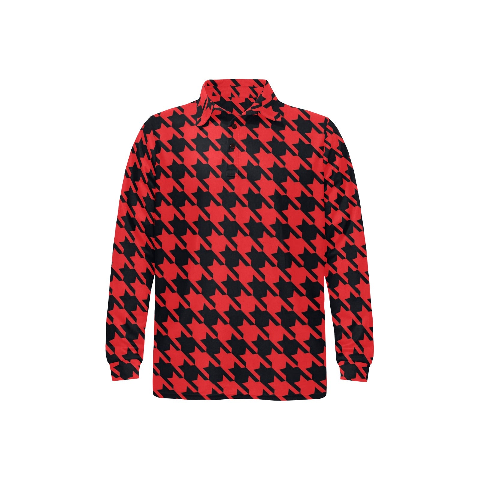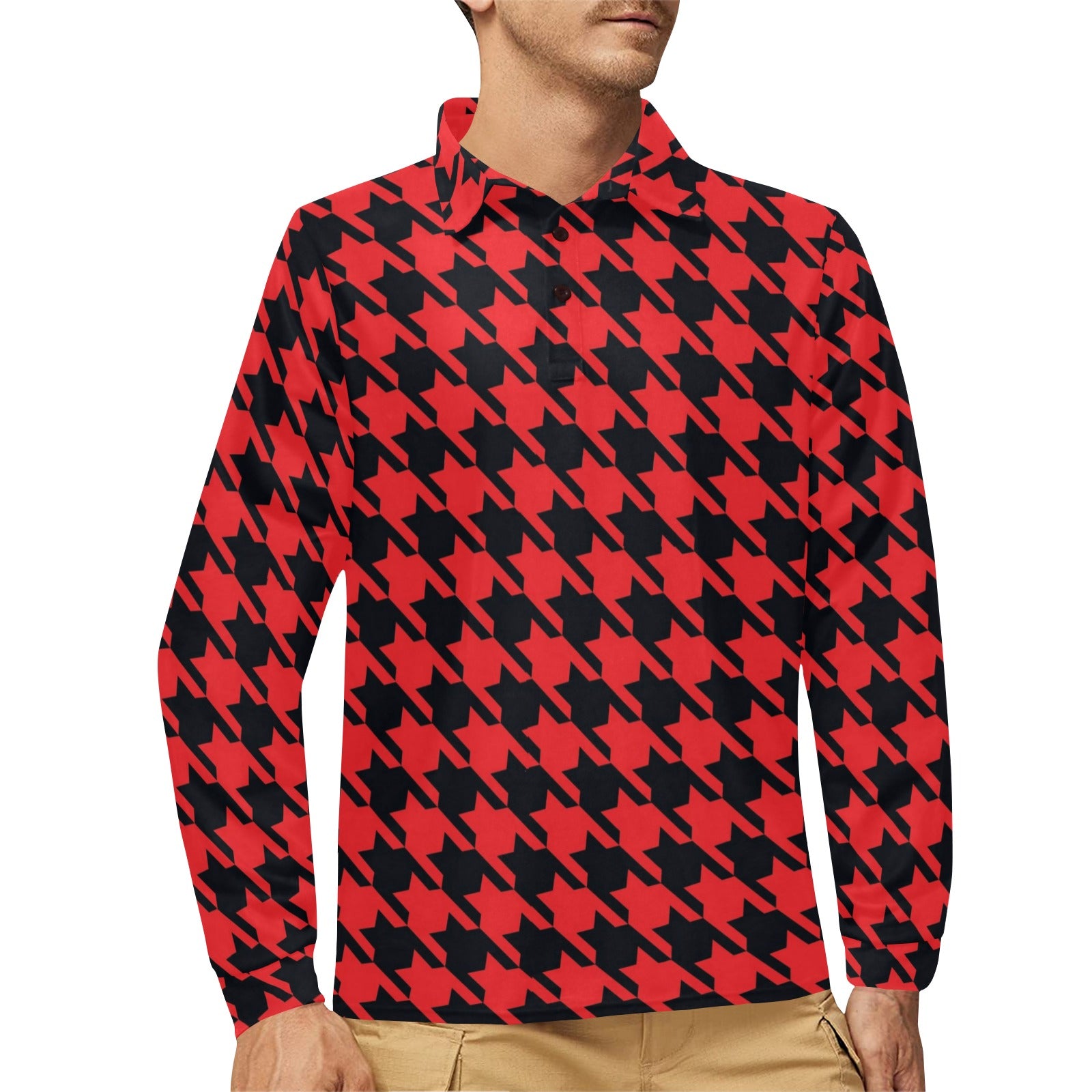 Houndstooth Red Pattern Print Design 03 Long Sleeve Polo Shirt For Men's custom-made-to-order and handcrafted to the highest quality standards.