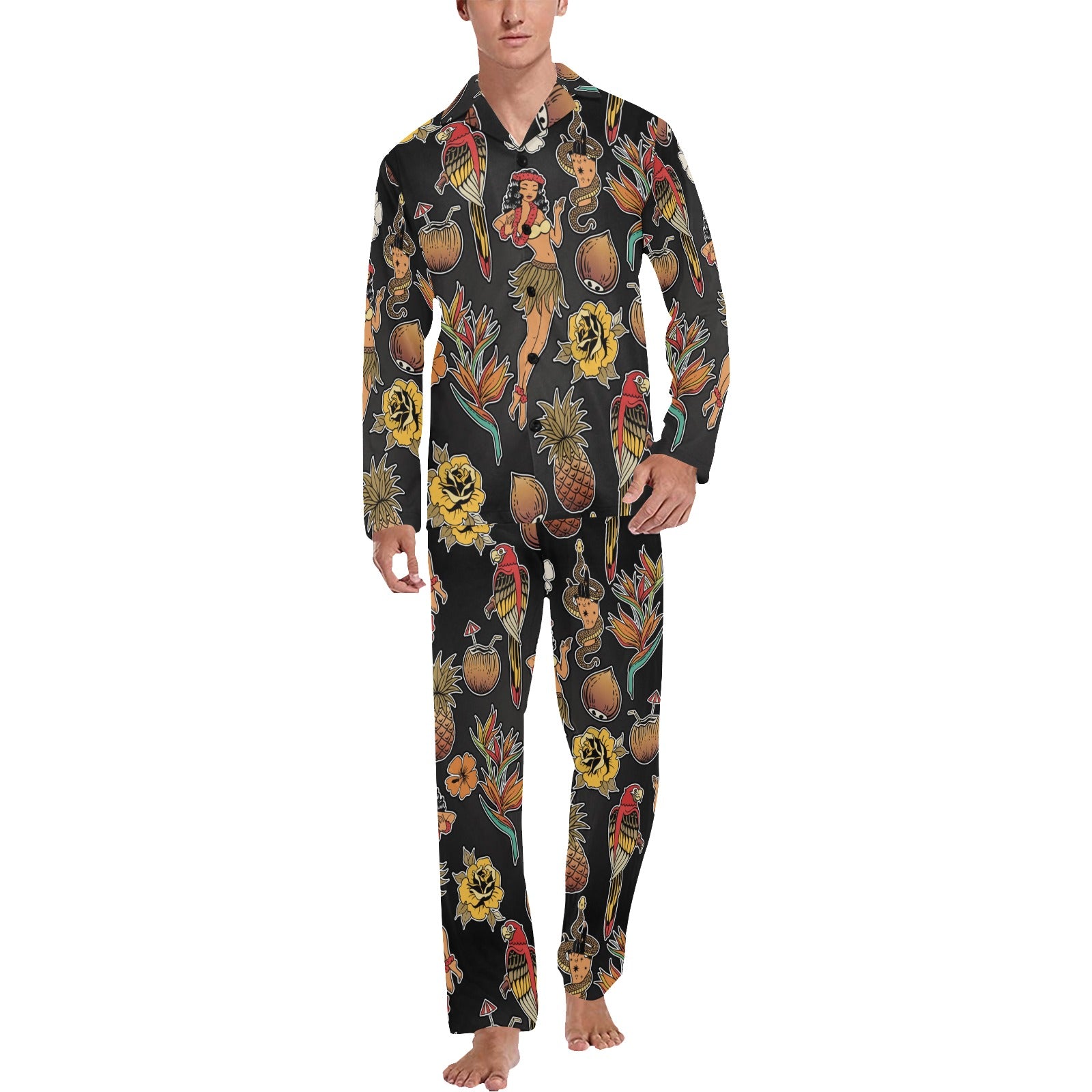 Hula Dancers Hawaiian Style Pattern Print Design 02 Men's Long Pajama Set custom-made-to-order and handcrafted to the highest quality standards.