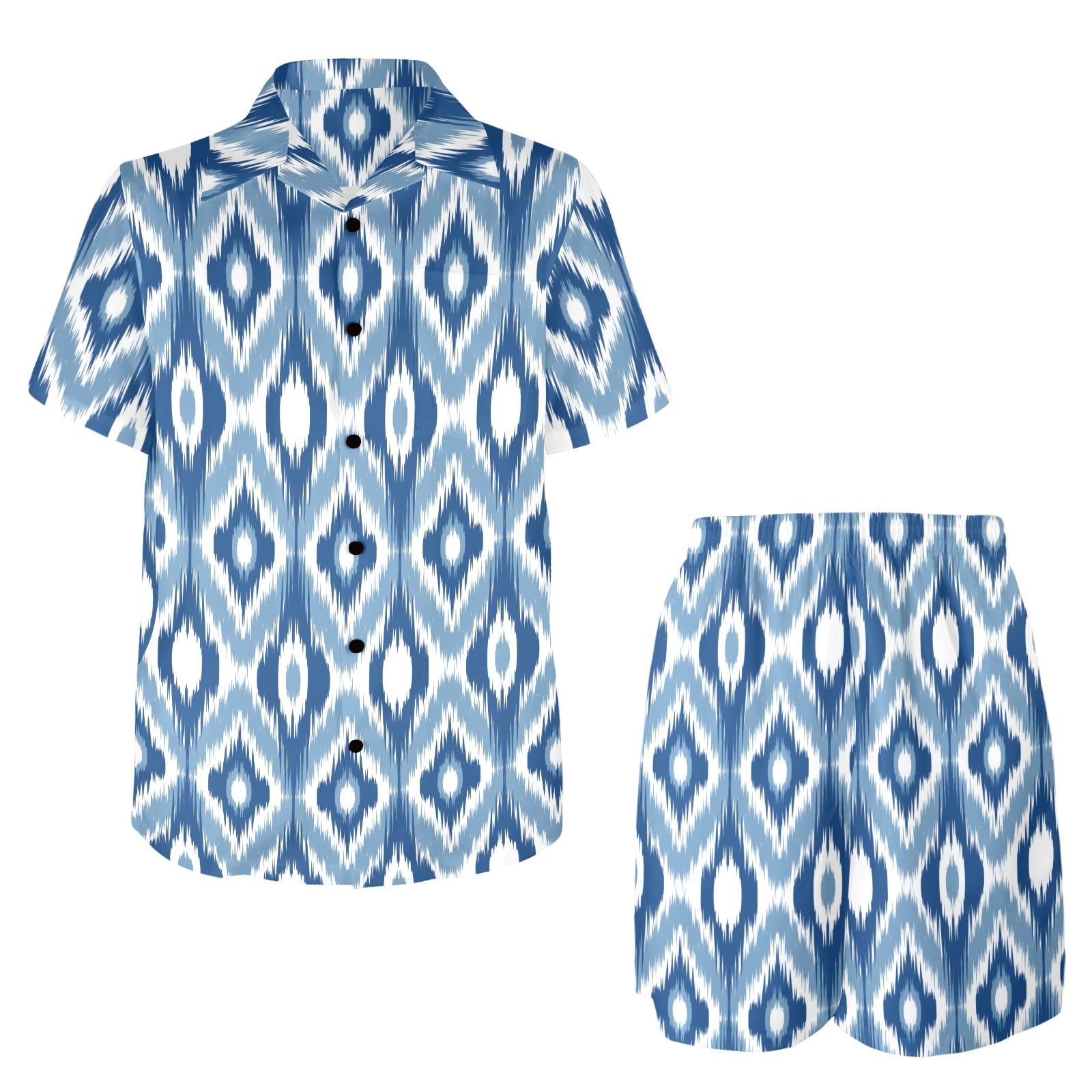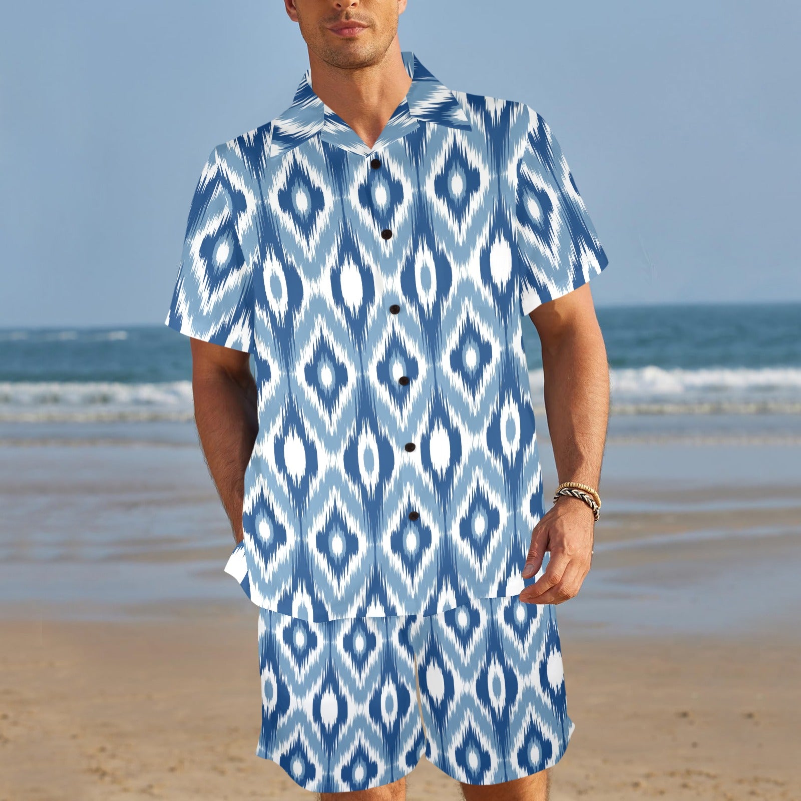 Ikat Pattern Print Design 03 Men's Beach Shirt and Shorts Set