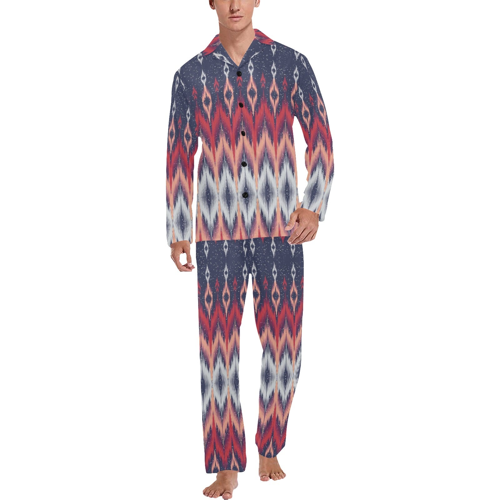 Ikat Print Design LKS401 Men's Long Pajama Set