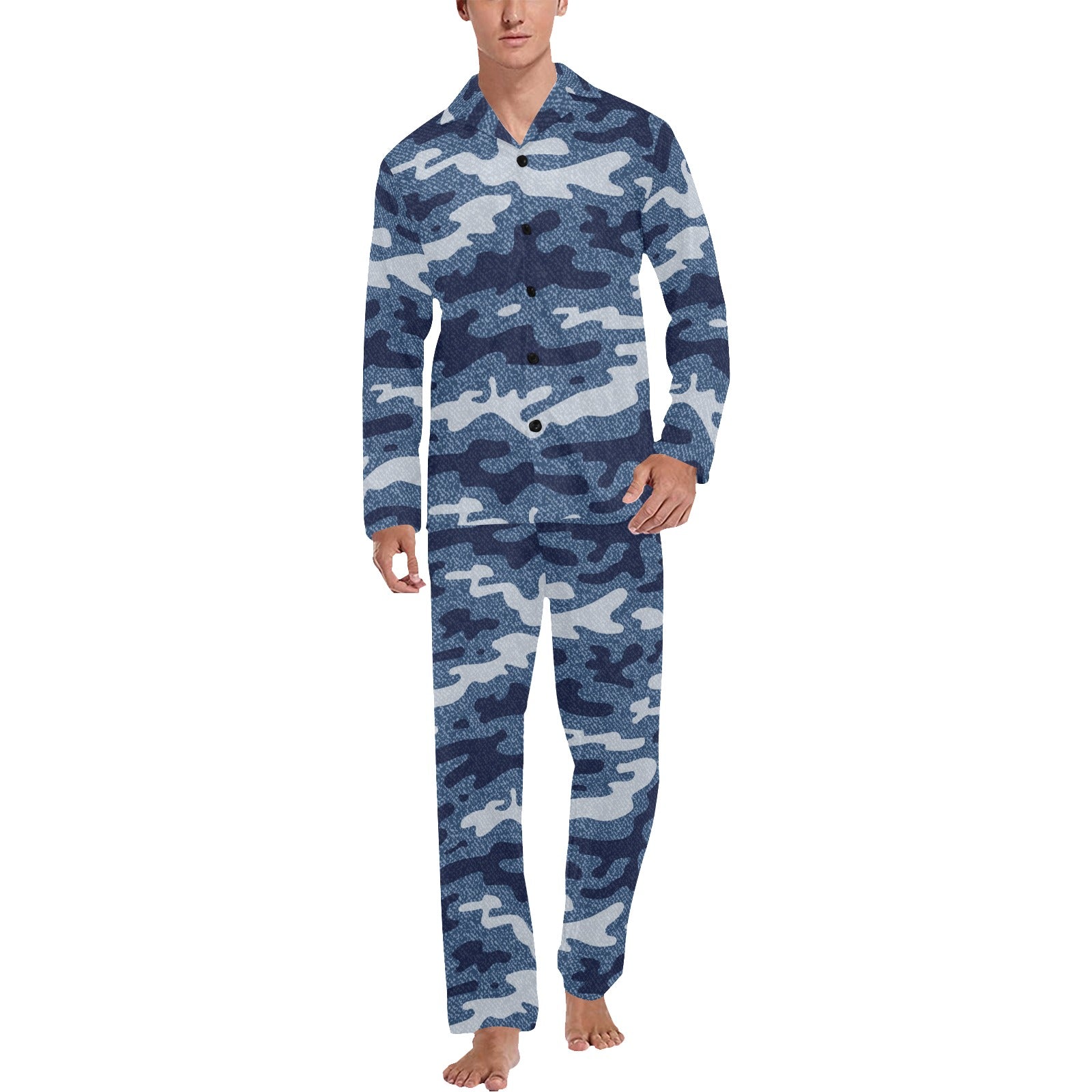 Jean Camouflage Pattern Print Design 05 Men's Long Pajama Set custom-made-to-order and handcrafted to the highest quality standards.