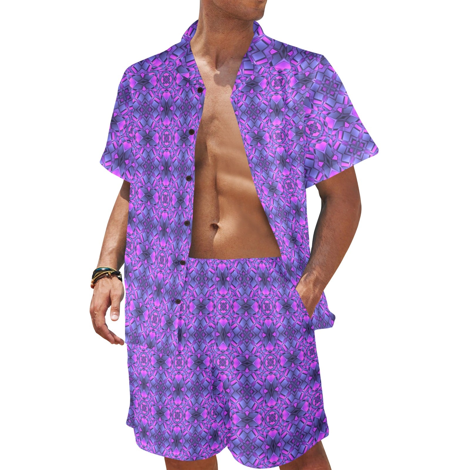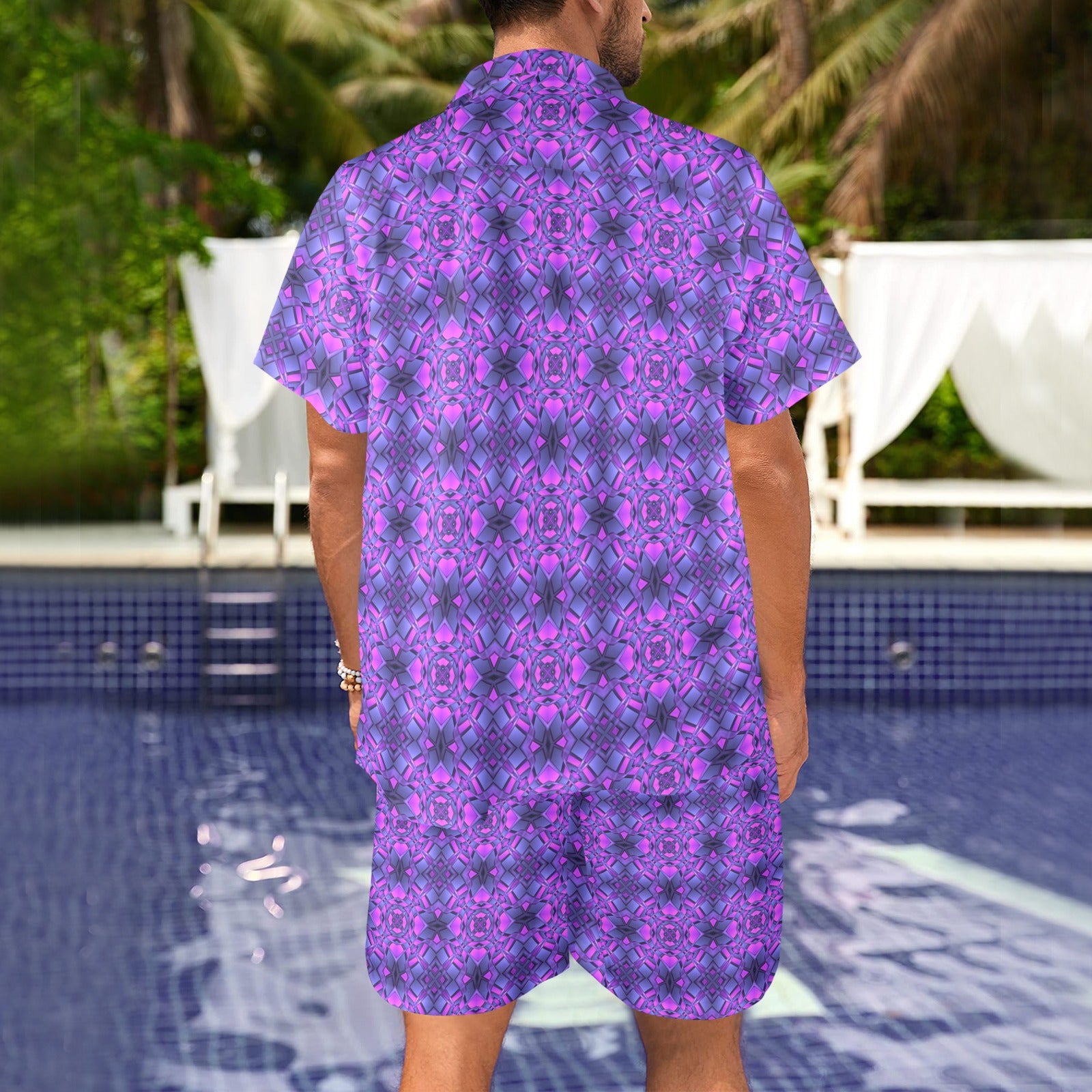 kaleidoscope Pattern Print Design Men's Beach Shirt and Shorts Set. It is hand-cut and sewn just for your order! This process starts as soon as your order is placed and may have a processing time of 5-9 business days before it ships.