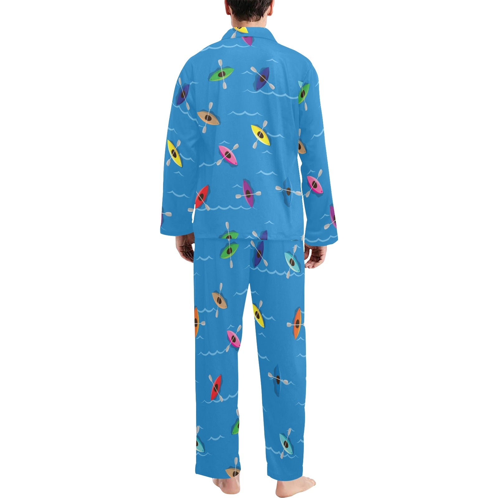 Kayak Pattern Print Design 03 Men's Long Pajama Set custom-made-to-order and handcrafted to the highest quality standards.