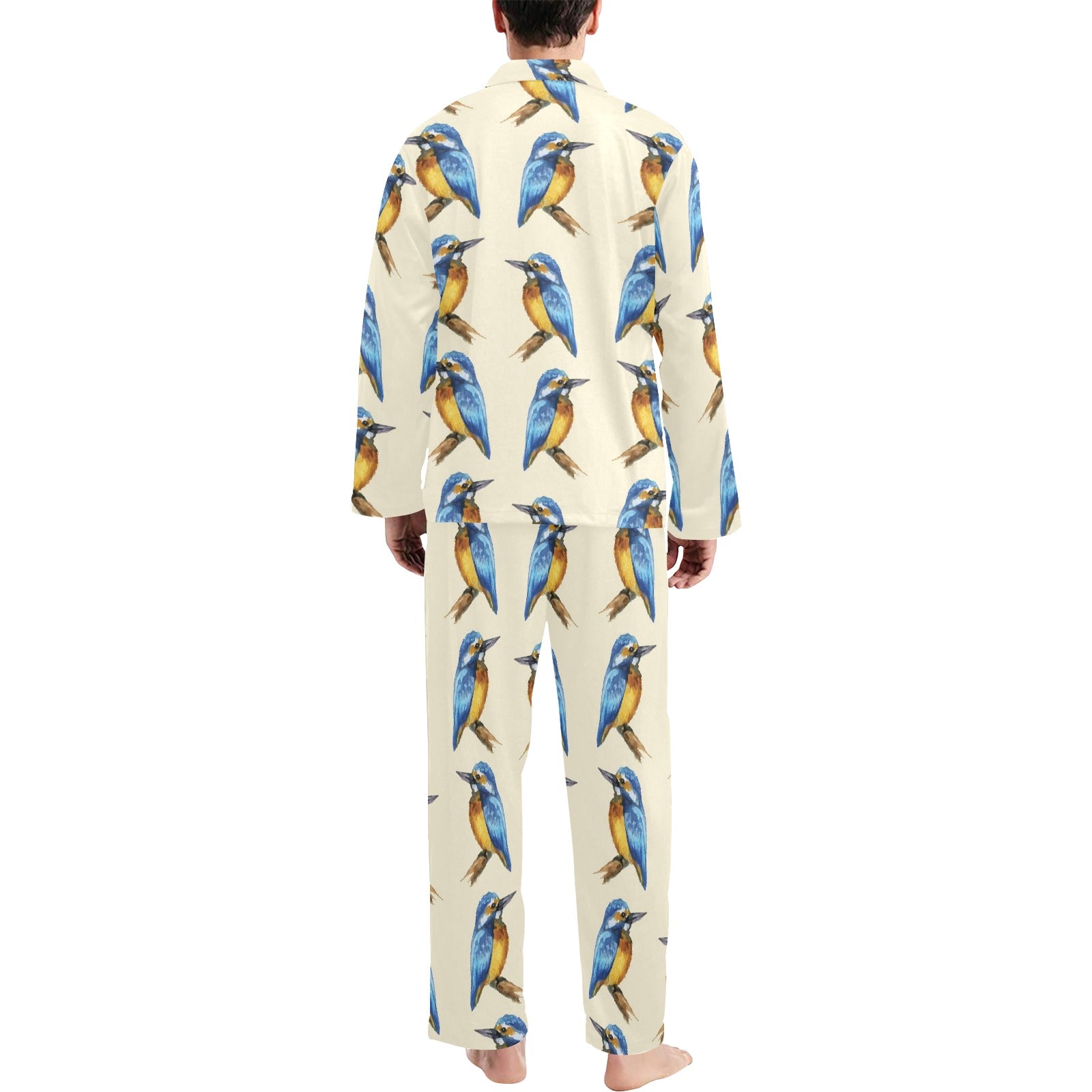 Kingfisher Pattern Print Design 01 Men's Long Pajama Set custom-made-to-order and handcrafted to the highest quality standards.