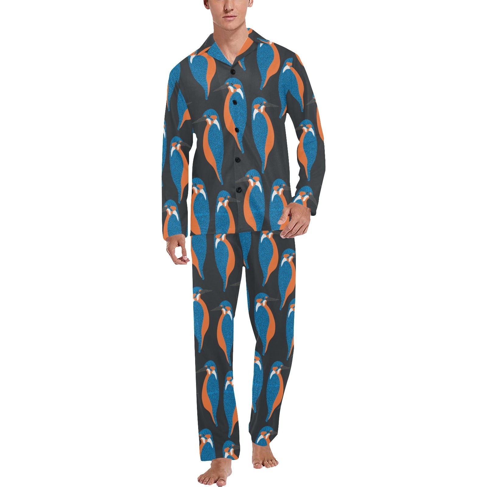 Kingfisher Pattern Print Design 03 Men's Long Pajama Set custom-made-to-order and handcrafted to the highest quality standards.