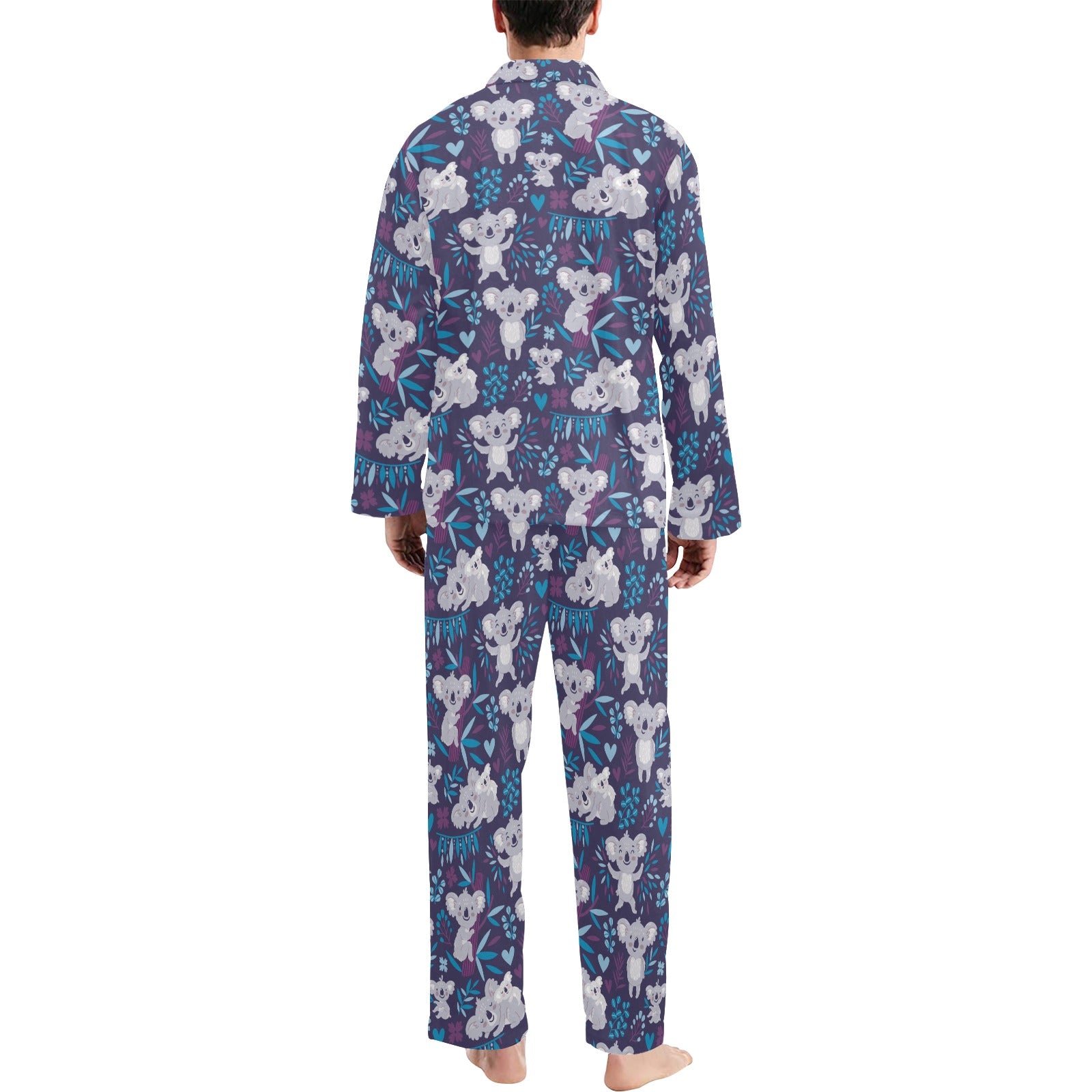 Koala Cute Themed Design Print Men's Long Pajama Set custom-made-to-order and handcrafted to the highest quality standards.