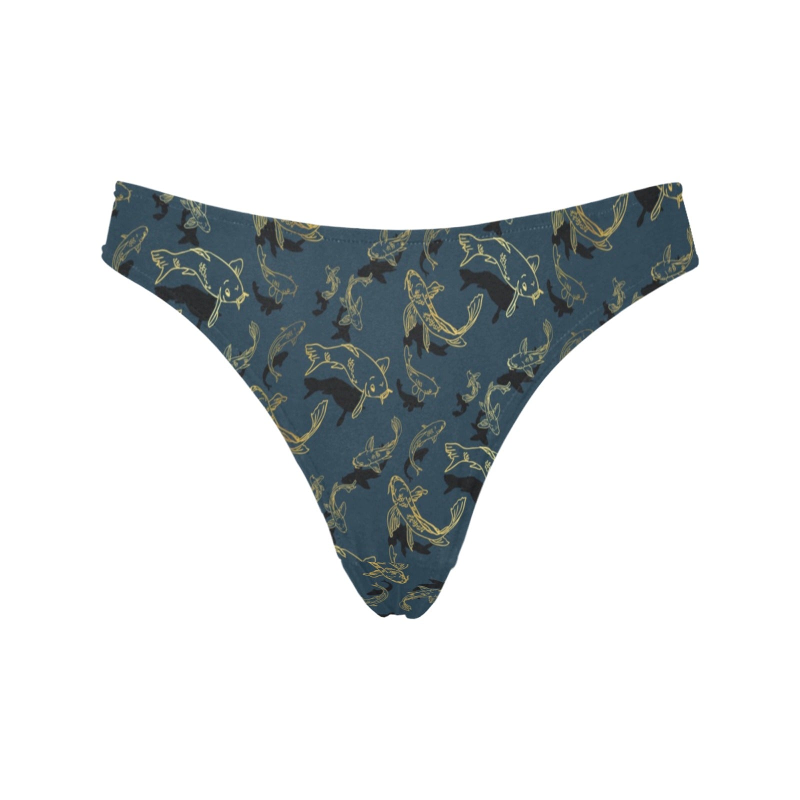 Koi Carp Gold Design Themed Print Women's Thongsis custom-made-to-order and handcrafted to the highest quality standards.