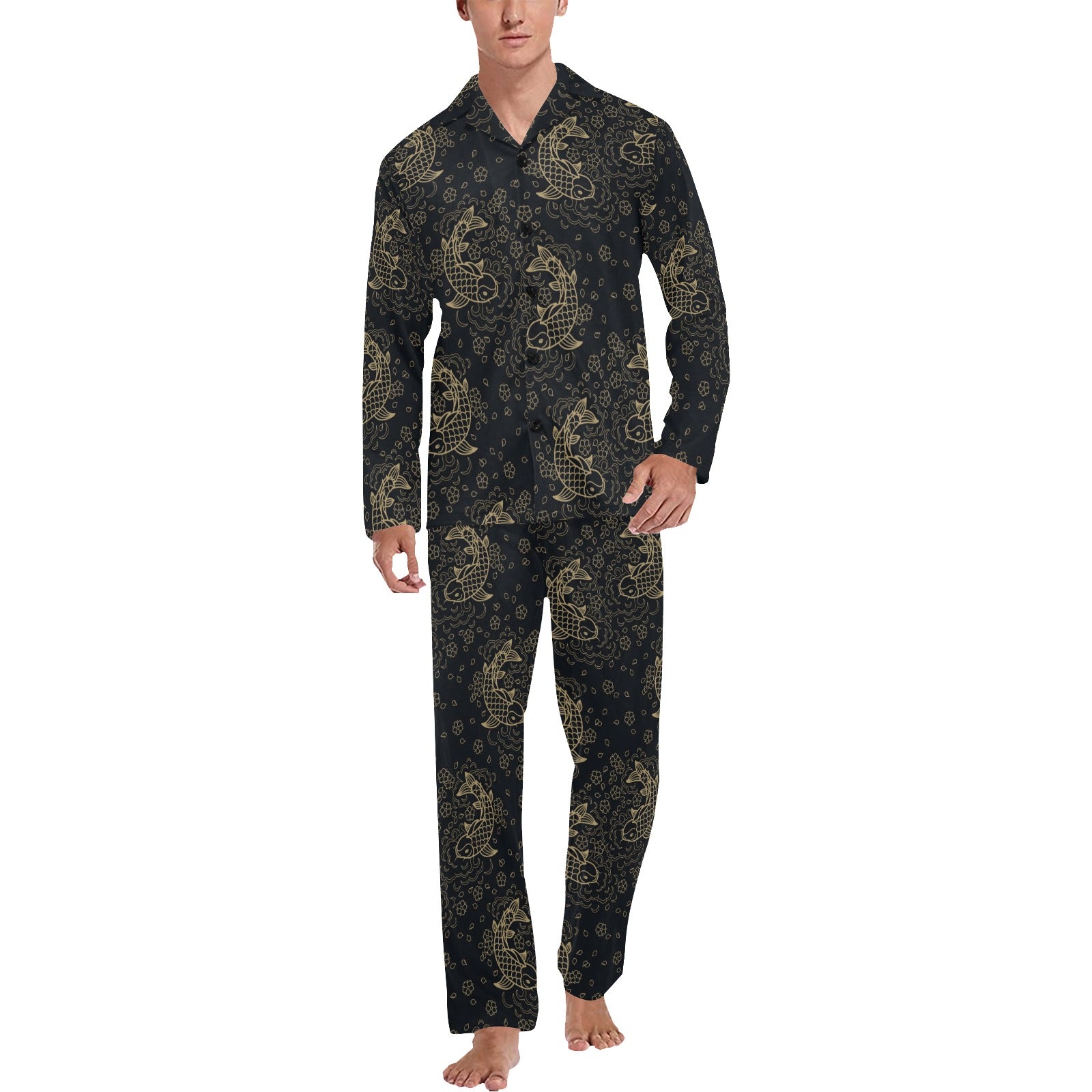 KOI Fish Pattern Print Design 02 Men's Long Pajama Set custom-made-to-order and handcrafted to the highest quality standards.