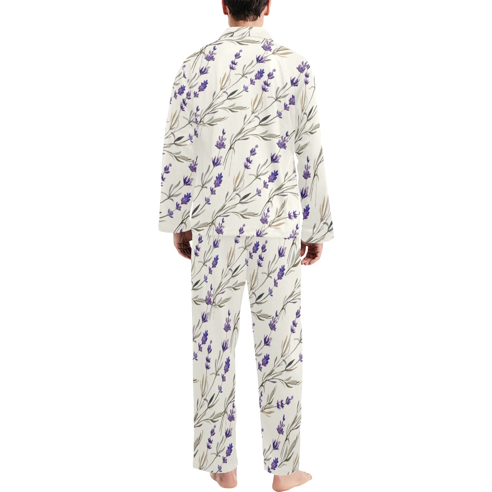 Lavender Pattern Print Design 01 Men's Long Pajama Set custom-made-to-order and handcrafted to the highest quality standards.