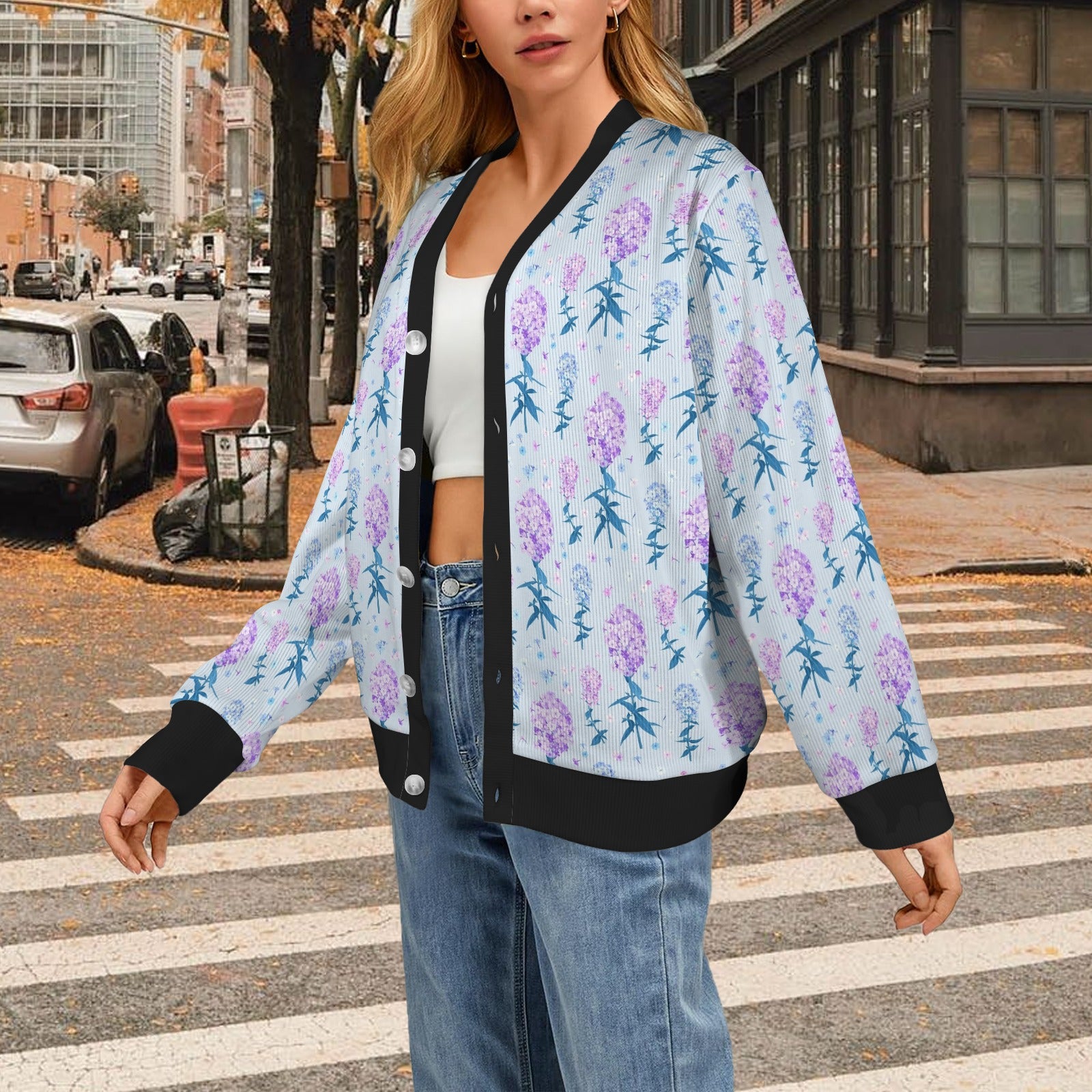 Lilac Pattern Print Design LI05 Women's Cardigan made-to-order and handcrafted to the highest quality standards.