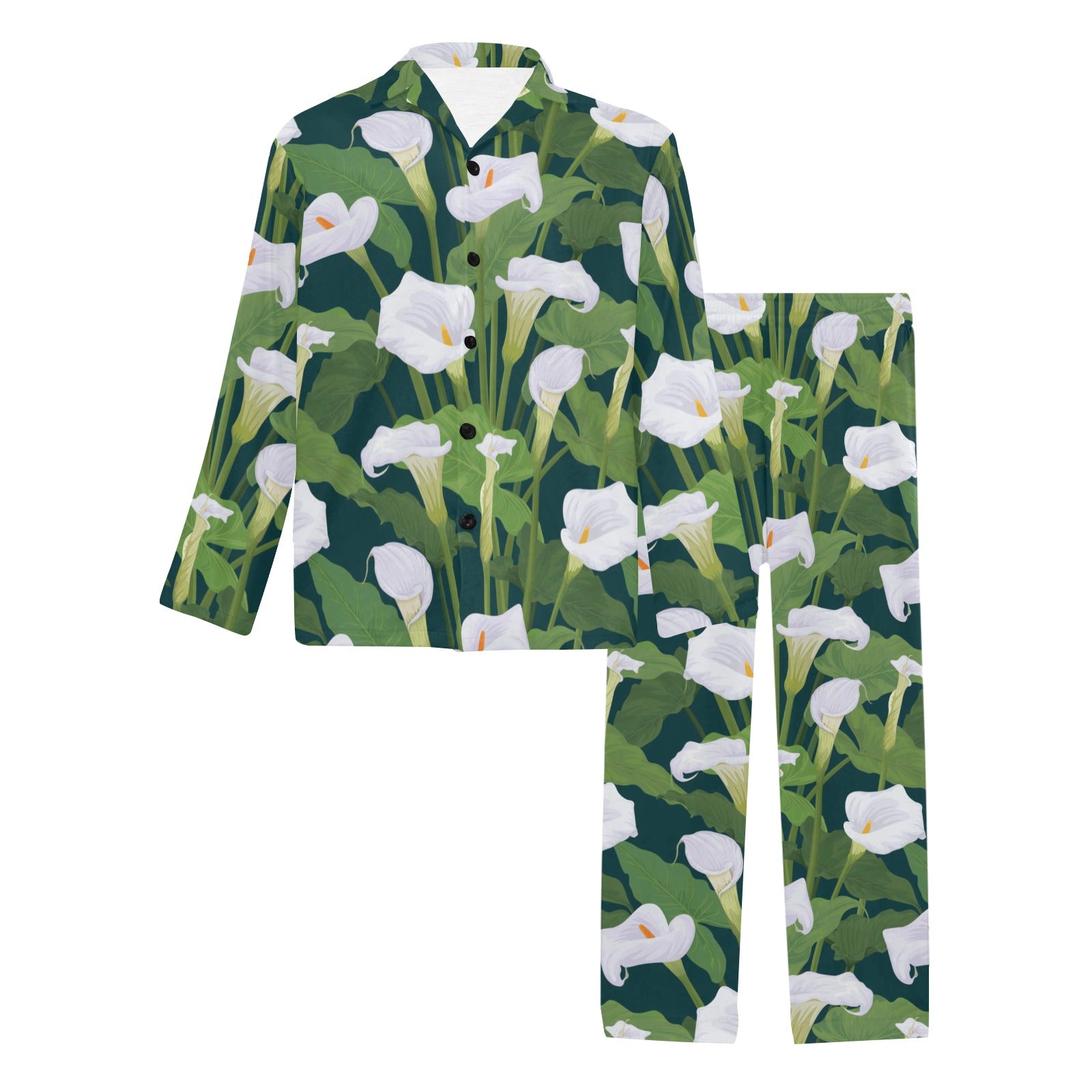 Lily Pattern Print Design 04 Men's Long Pajama Set custom-made-to-order and handcrafted to the highest quality standards.
