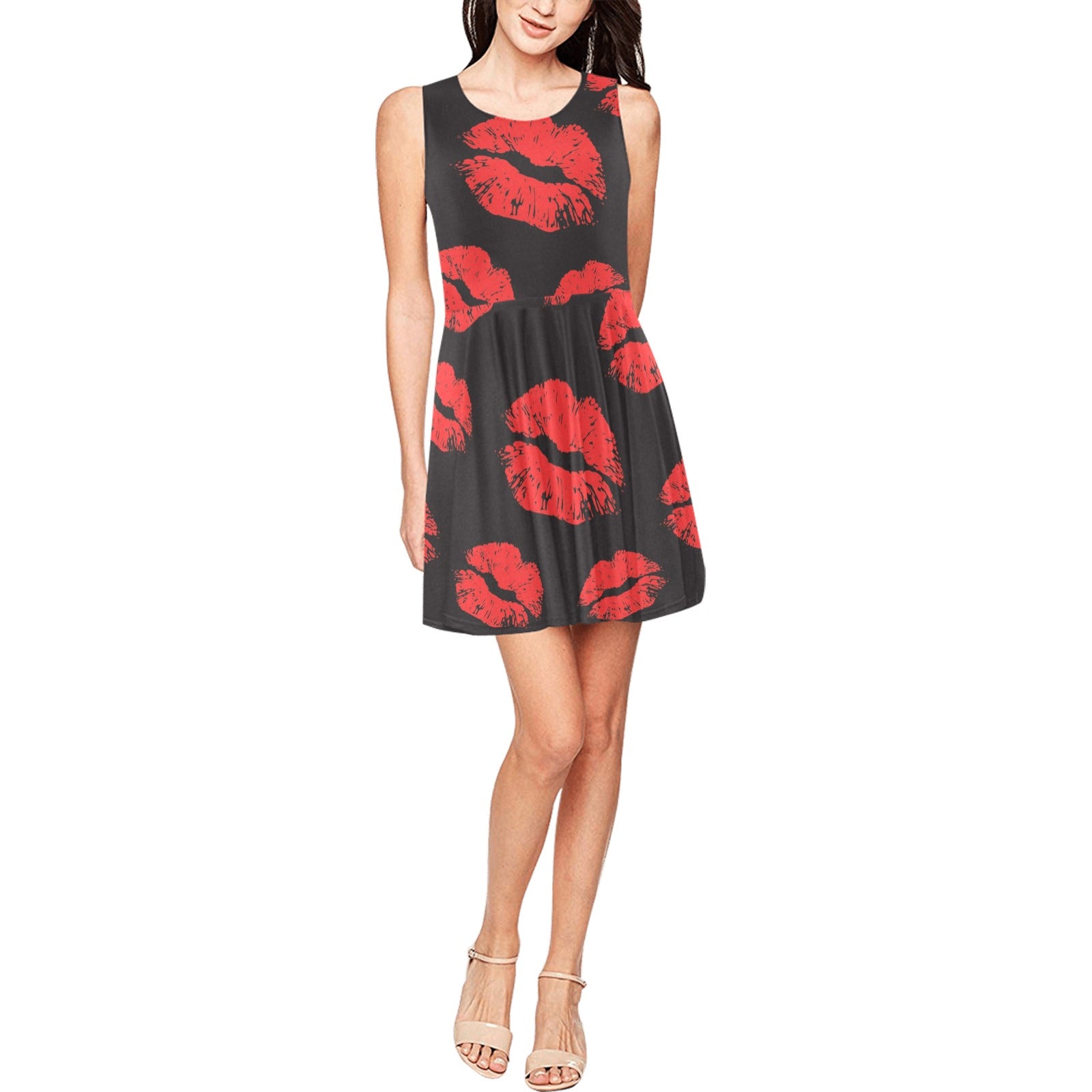 Lip Red Pattern Print Design 02 Sleeveless Dress