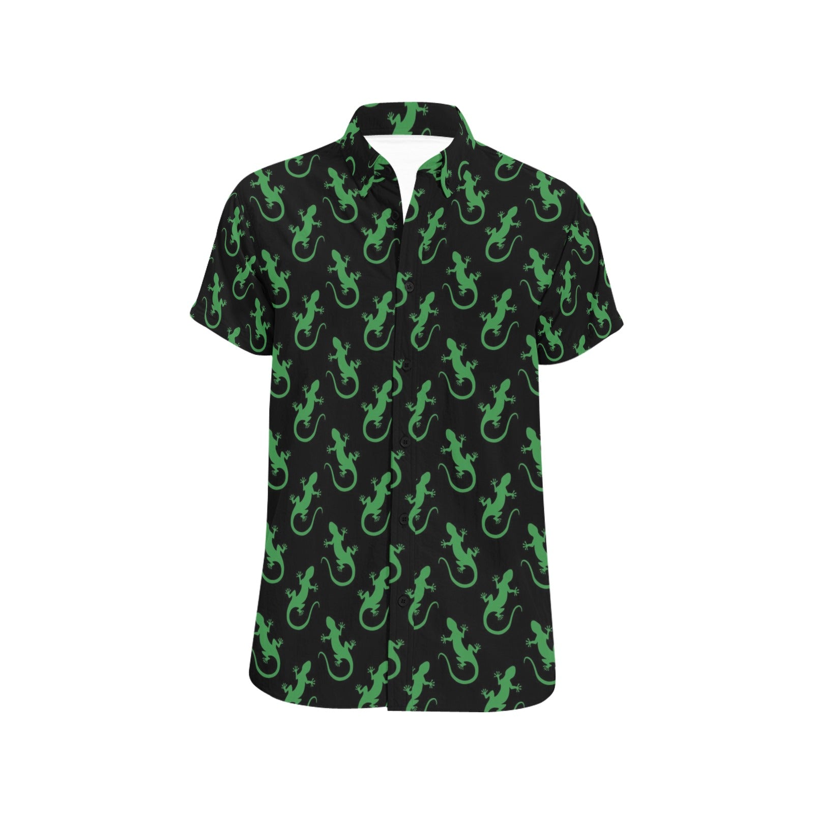 This is a lizard Print Design LKS401 Men Short Sleeve Button Up Shirt Made to Order Item. It is hand-cut and sewn just for your order! This process starts as soon as your order is placed and may have a processing time of 5-9 business days before it ships.