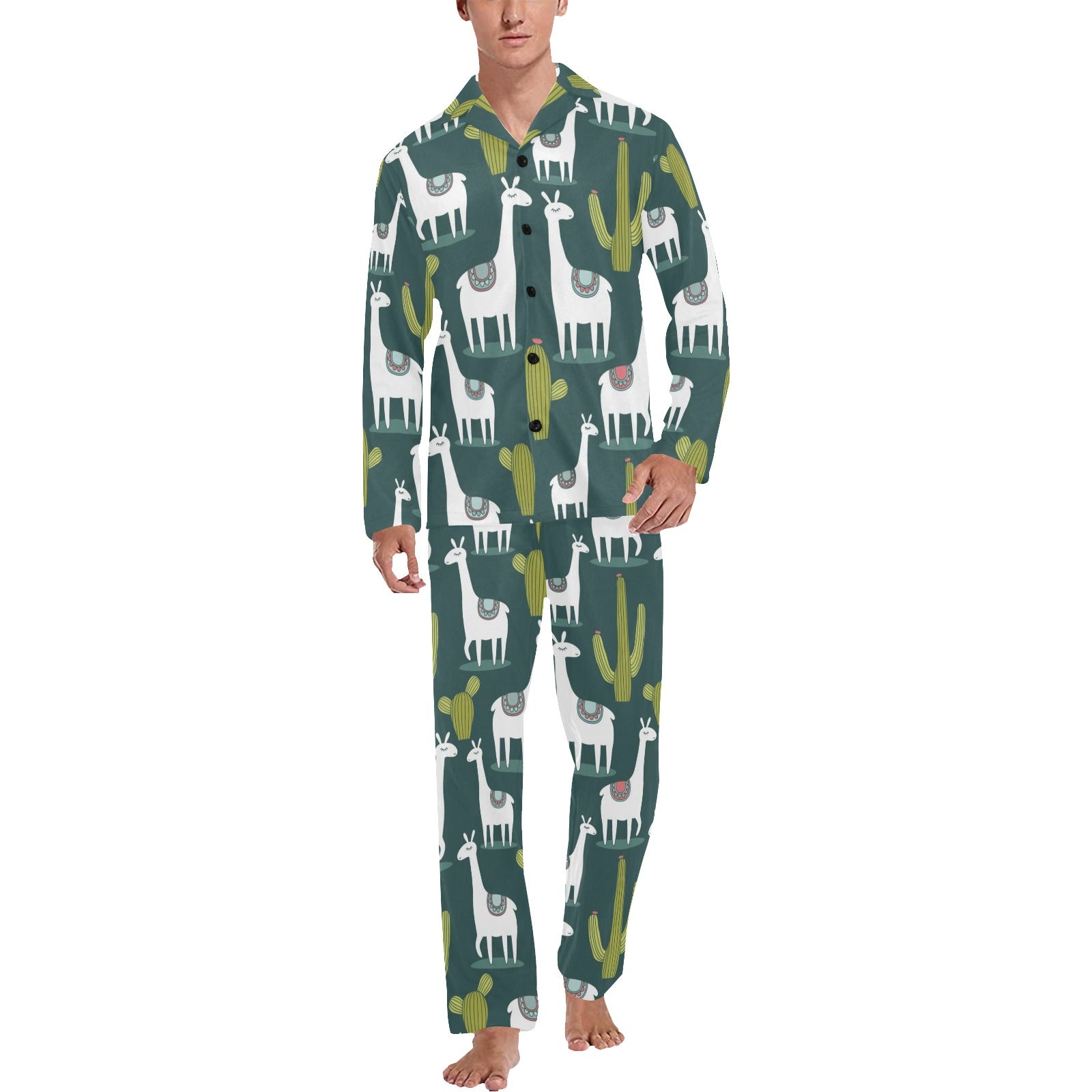 Llama Cactus Pattern Print Design 02 Men's Long Pajama Set custom-made-to-order and handcrafted to the highest quality standards.