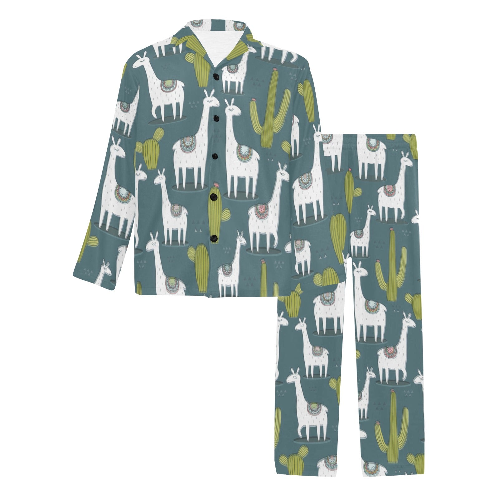 Llama Cactus Pattern Print Design 03 Men's Long Pajama Set custom-made-to-order and handcrafted to the highest quality standards.