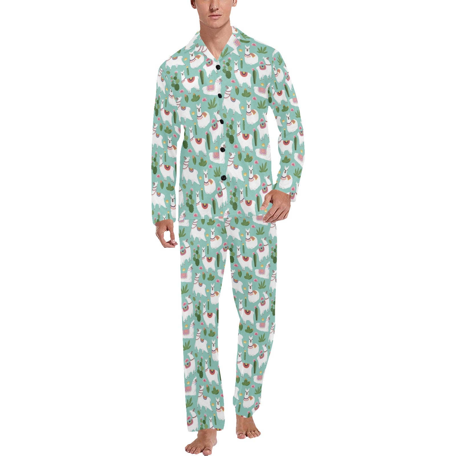 Llama with Cactus Themed Print Men's Long Pajama Set custom-made-to-order and handcrafted to the highest quality standards.