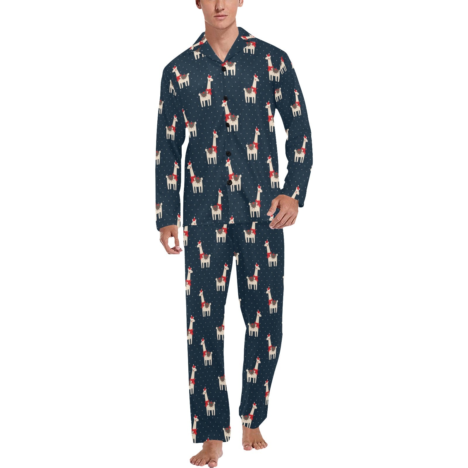 Llama with Polka Dot Themed Print Men's Long Pajama Set custom-made-to-order and handcrafted to the highest quality standards.