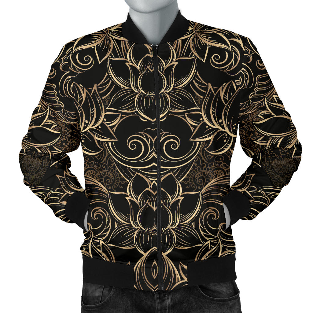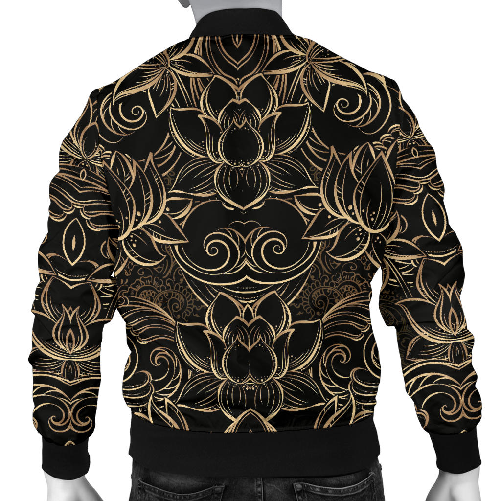 Lotus Gold Mandala Design Themed Men Bomber Jacket