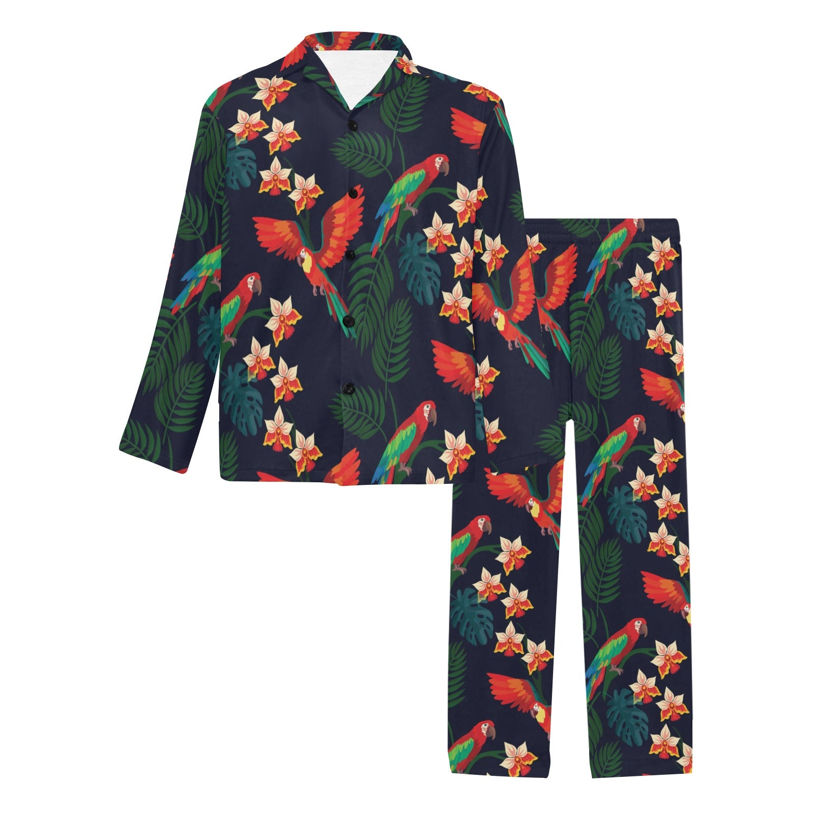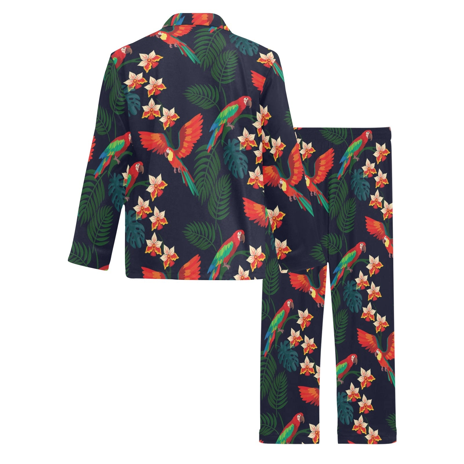 Macaw Pattern Print Design 02 Men's Long Pajama Set custom-made-to-order and handcrafted to the highest quality standards.