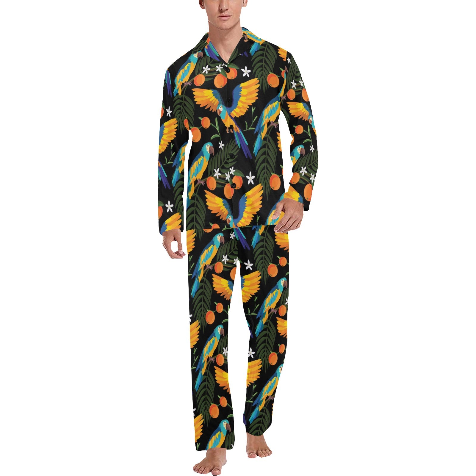 Macaw Pattern Print Design 03 Men's Long Pajama Set custom-made-to-order and handcrafted to the highest quality standards.