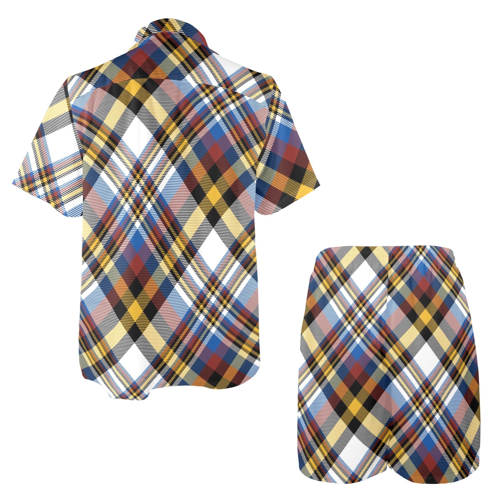 Madras Pattern Print Design 01 Men's Beach Shirt and Shorts Set. It is hand-cut and sewn just for your order! This process starts as soon as your order is placed and may have a processing time of 5-9 business days before it ships.