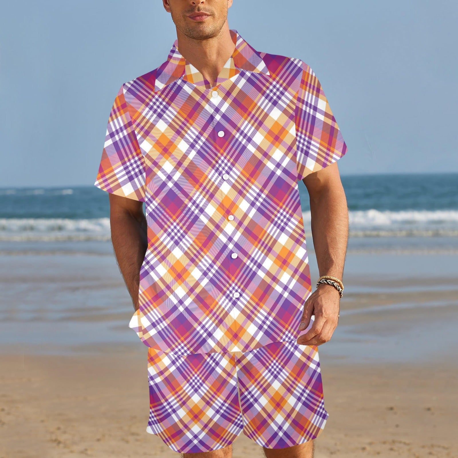 Madras Pattern Print Design 02 Men's Beach Shirt and Shorts Set