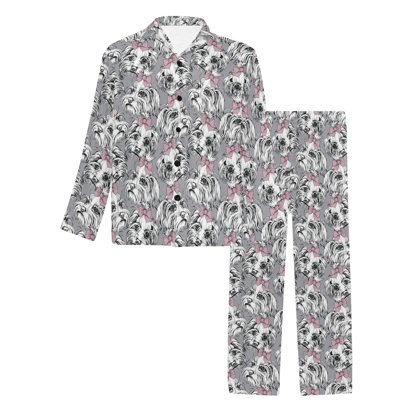 Maltese Pattern Print Design 01 Men's Long Pajama Set