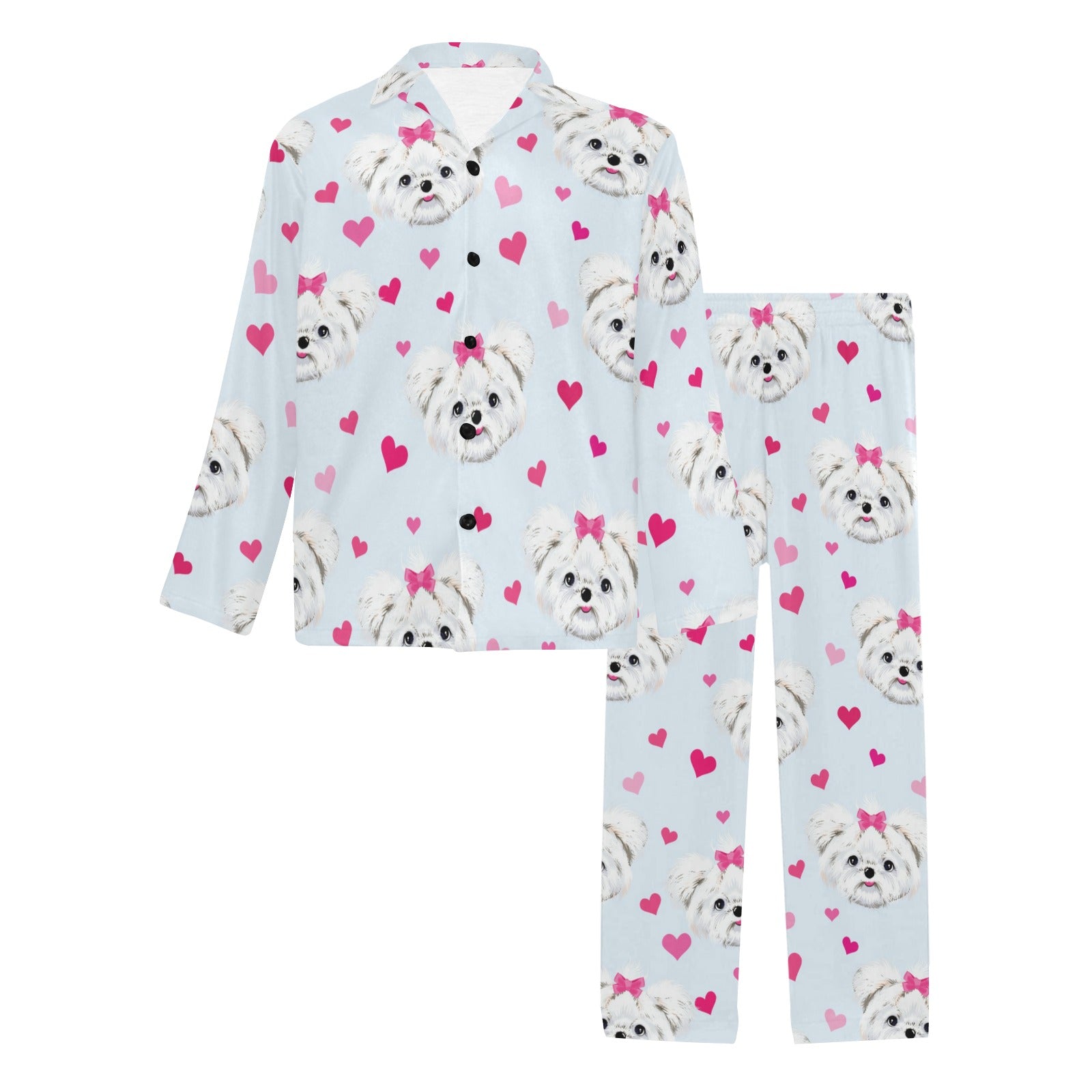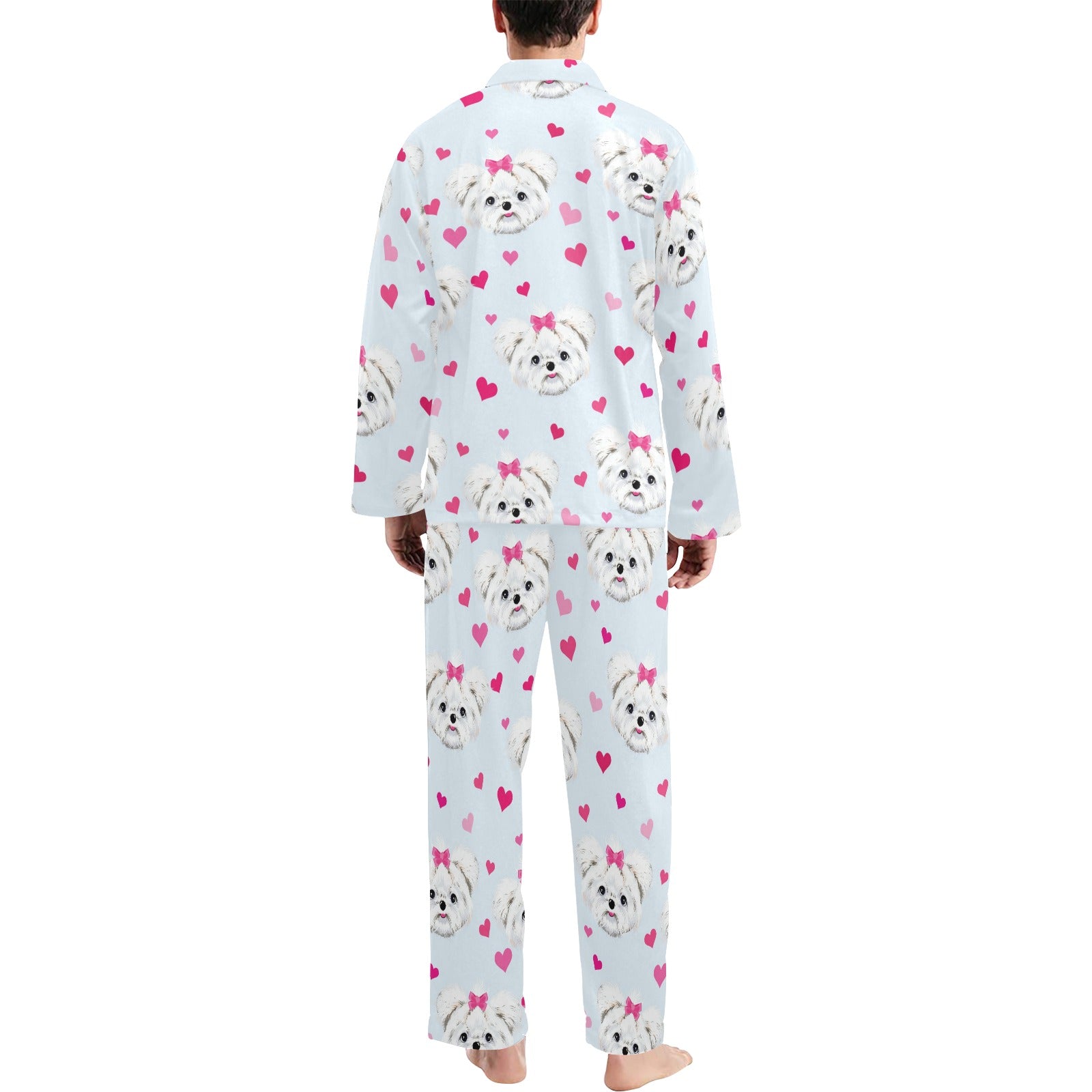 Maltese Pattern Print Design 03 Men's Long Pajama Set custom-made-to-order and handcrafted to the highest quality standards.