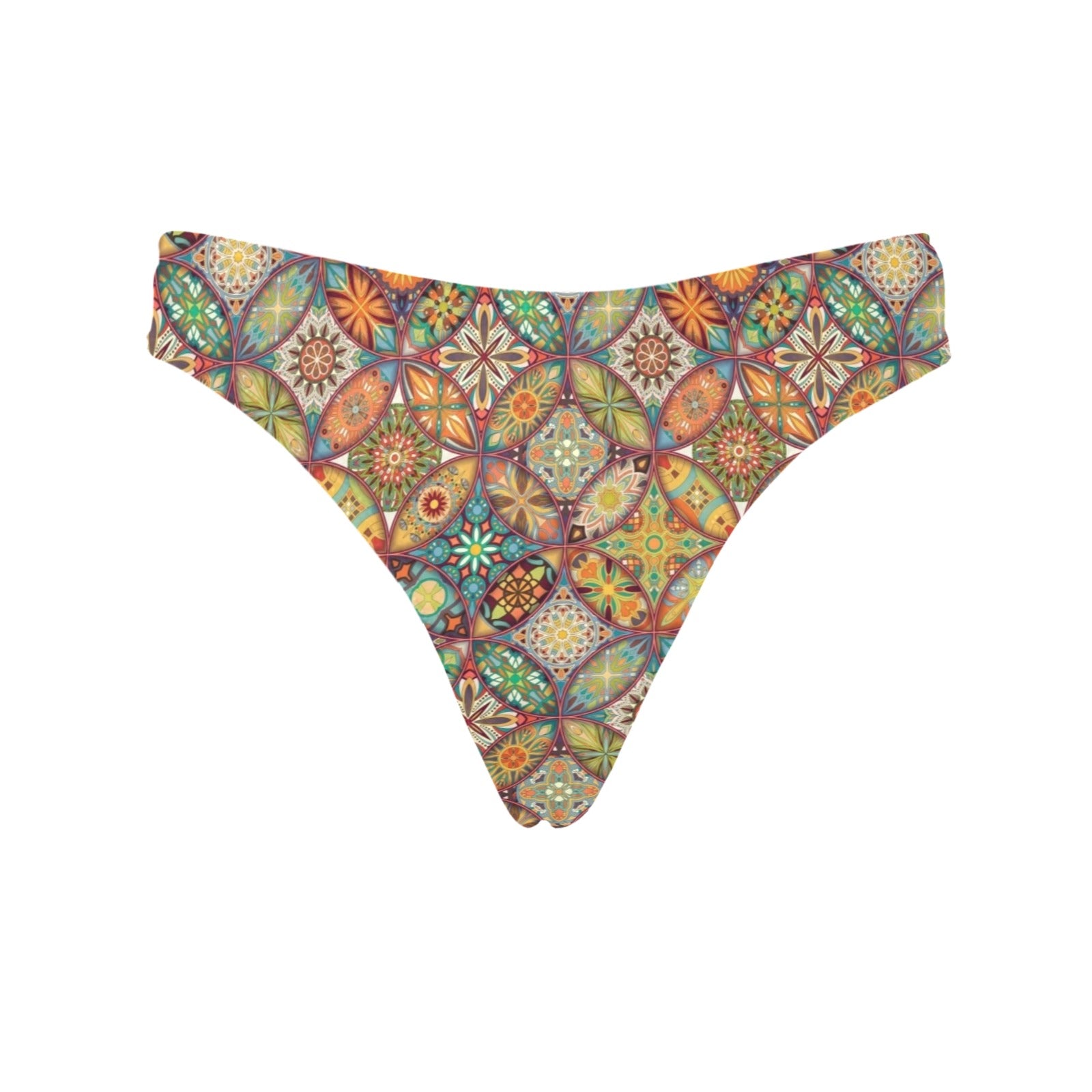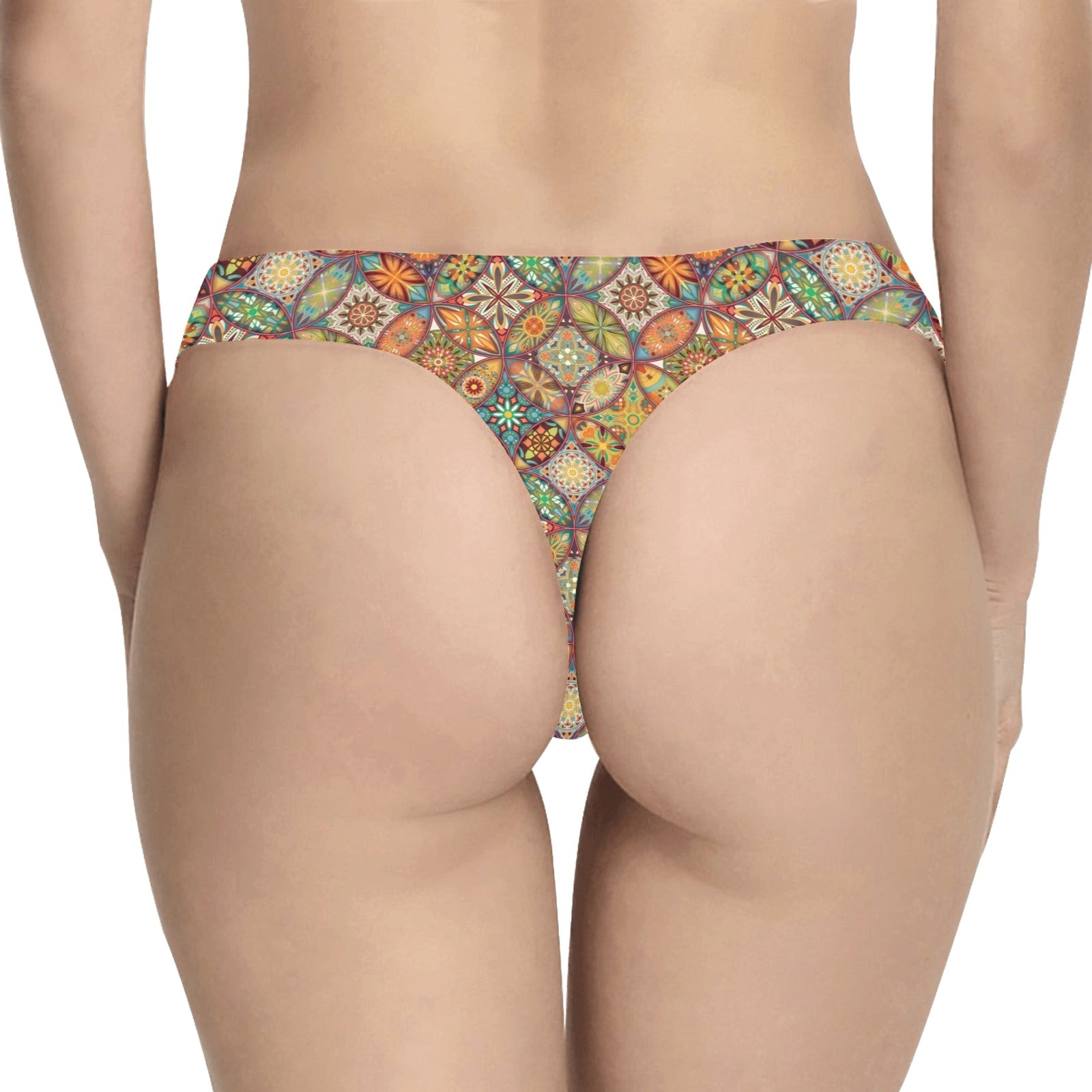 Mandala Flower Themed Design Print Women's Thongsis custom-made-to-order and handcrafted to the highest quality standards.