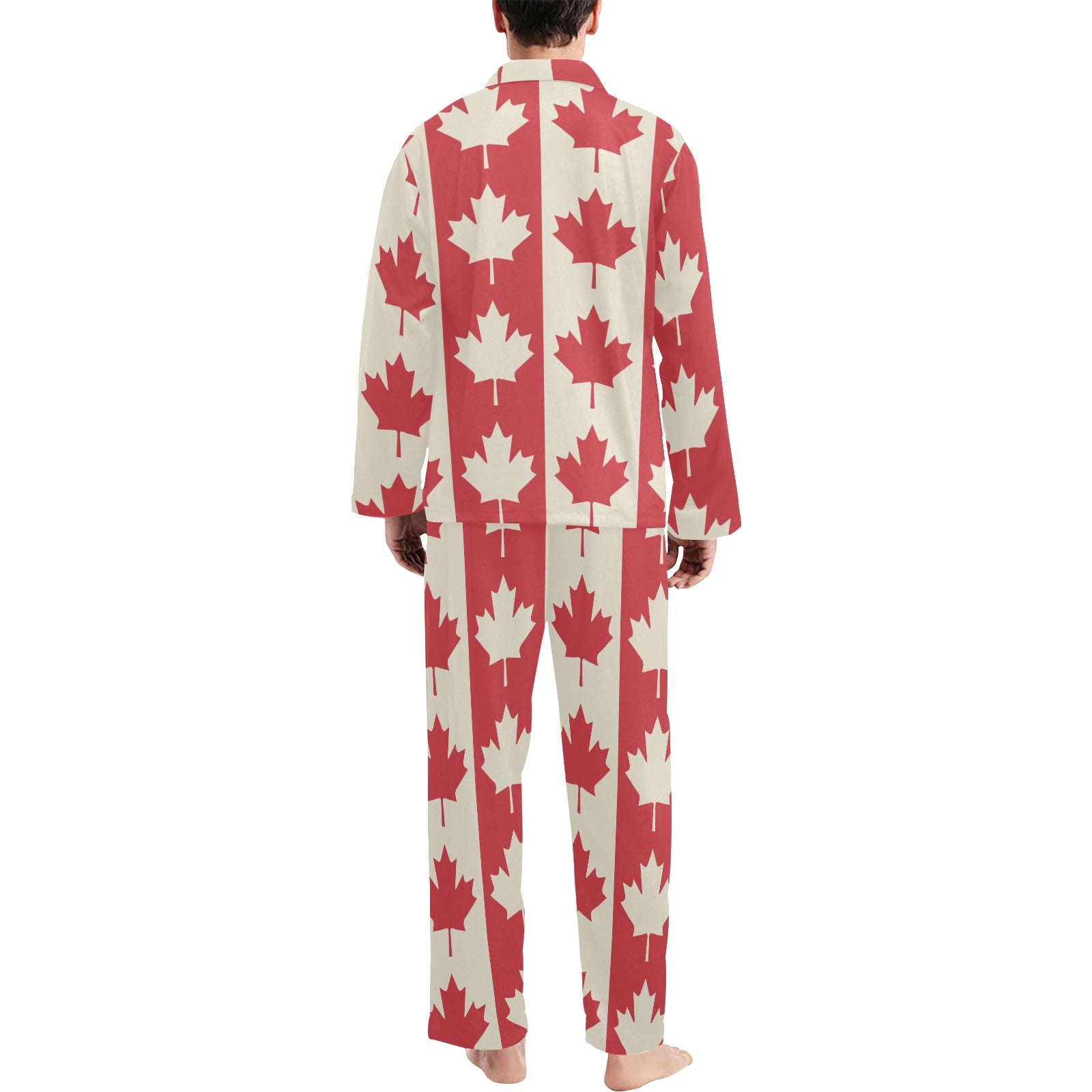 Maple Leaf Pattern Print Design 02 Men's Long Pajama Set custom-made-to-order and handcrafted to the highest quality standards.