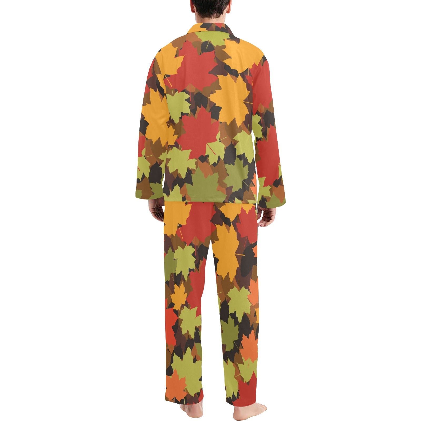 Maple Leaf Pattern Print Design 05 Men's Long Pajama Set custom-made-to-order and handcrafted to the highest quality standards.
