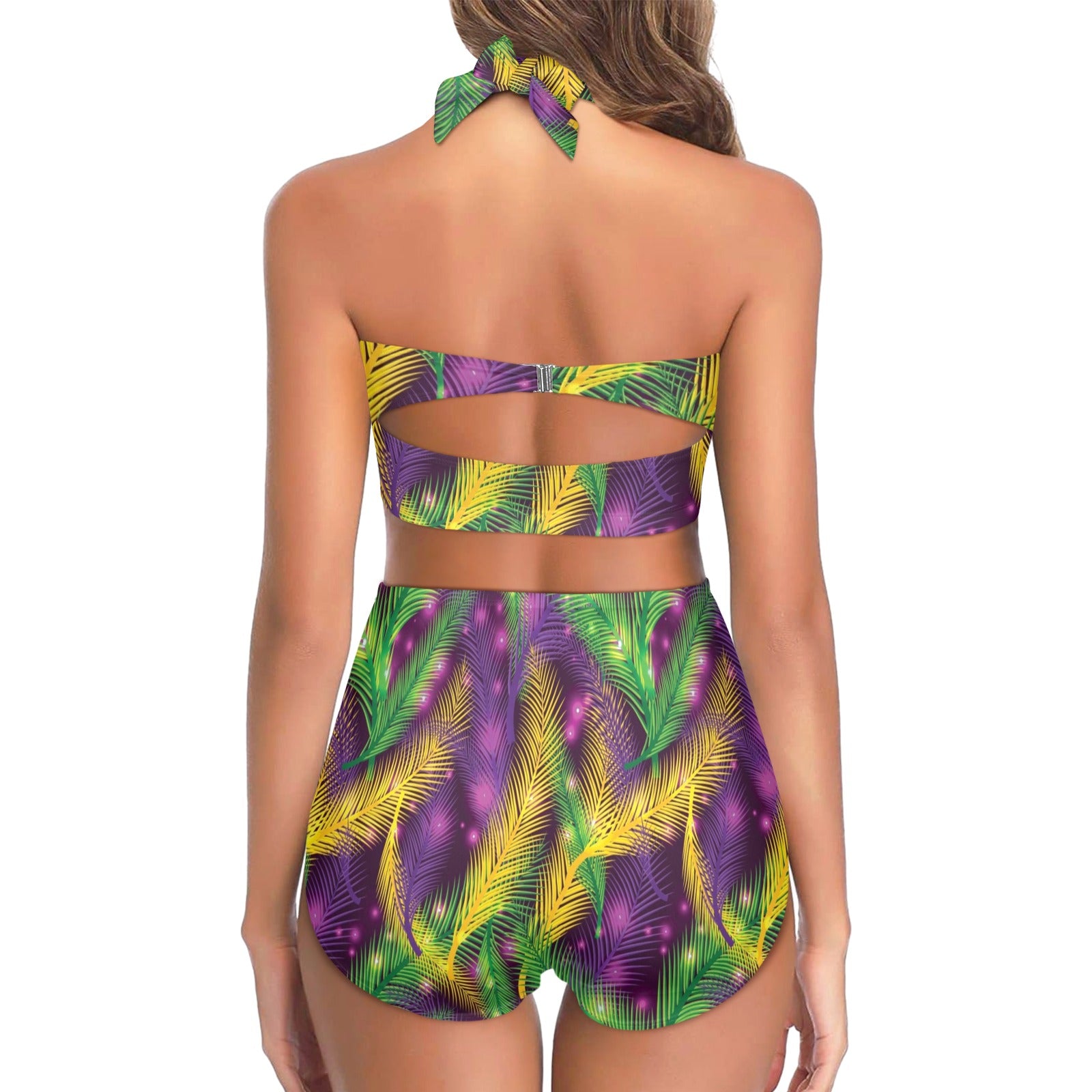 Mardi Gras Pattern Print Design 09 Halter Neck Bikini Swimsuit made-to-order and handcrafted to the highest quality standards.