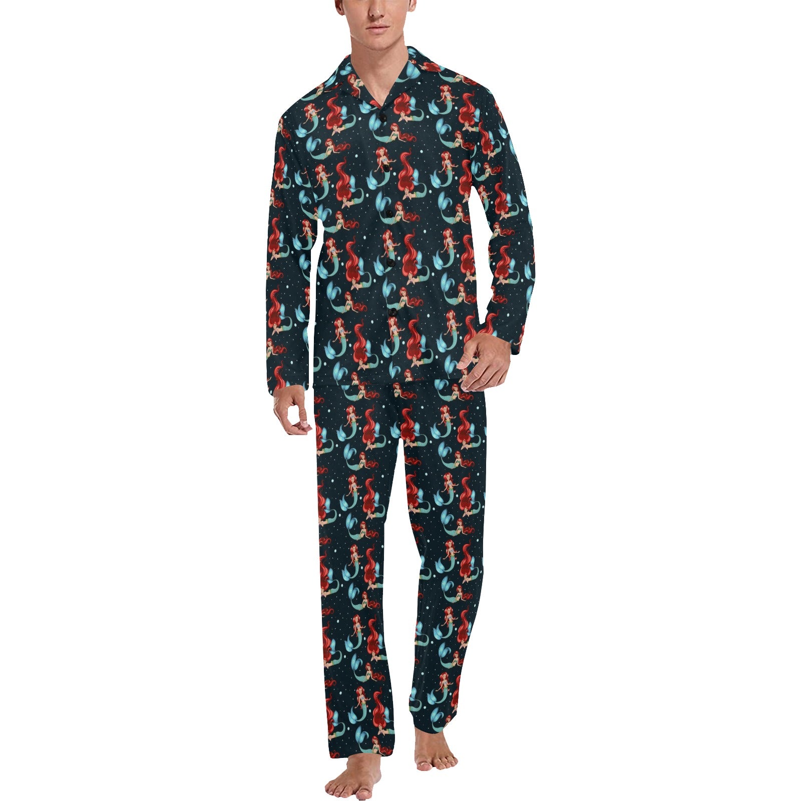 Mermaid Girl Themed Design Print Men's Long Pajama Set