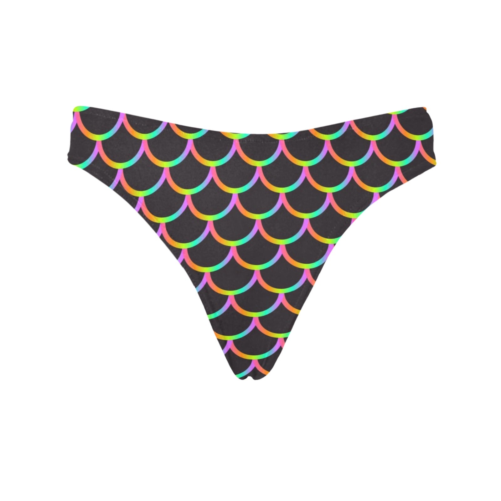 Mermaid Tail Rainbow Design Print Women's Thongsis custom-made-to-order and handcrafted to the highest quality standards.
