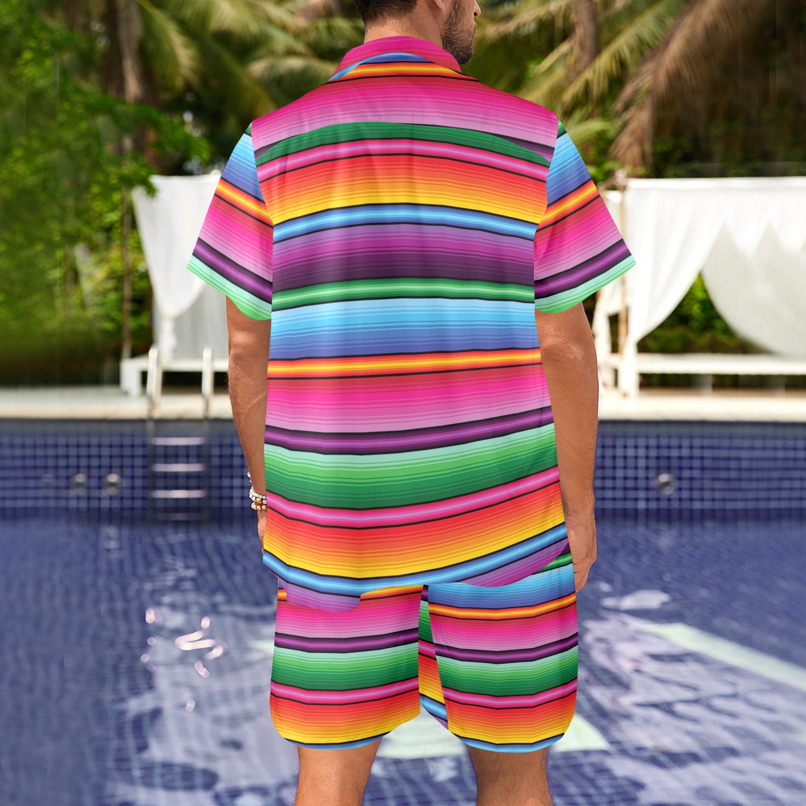 Mexican Blanket Colorful Print Pattern Men's Beach Shirt and Shorts Set