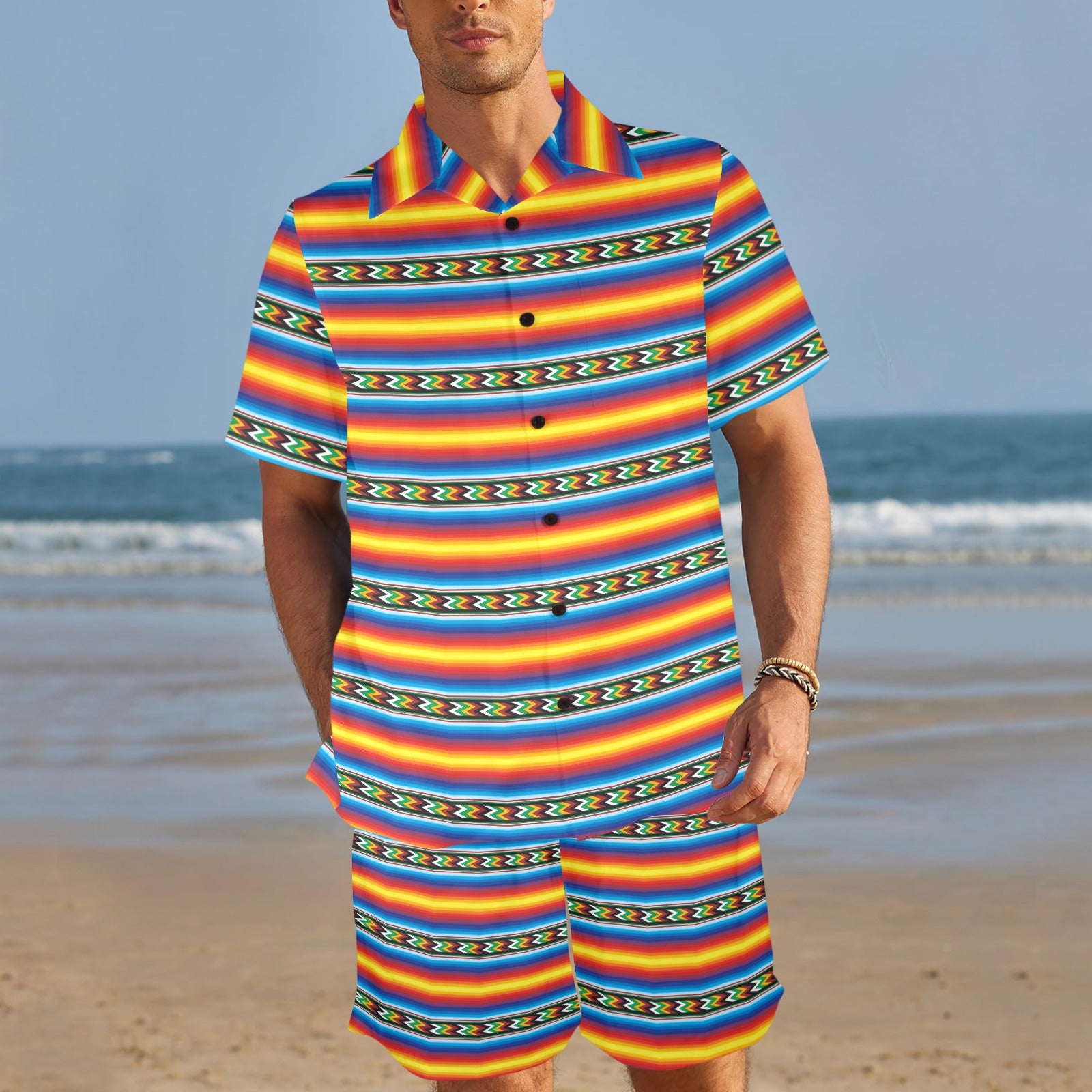 Mexican Blanket ZigZag Print Pattern Men's Beach Shirt and Shorts Set