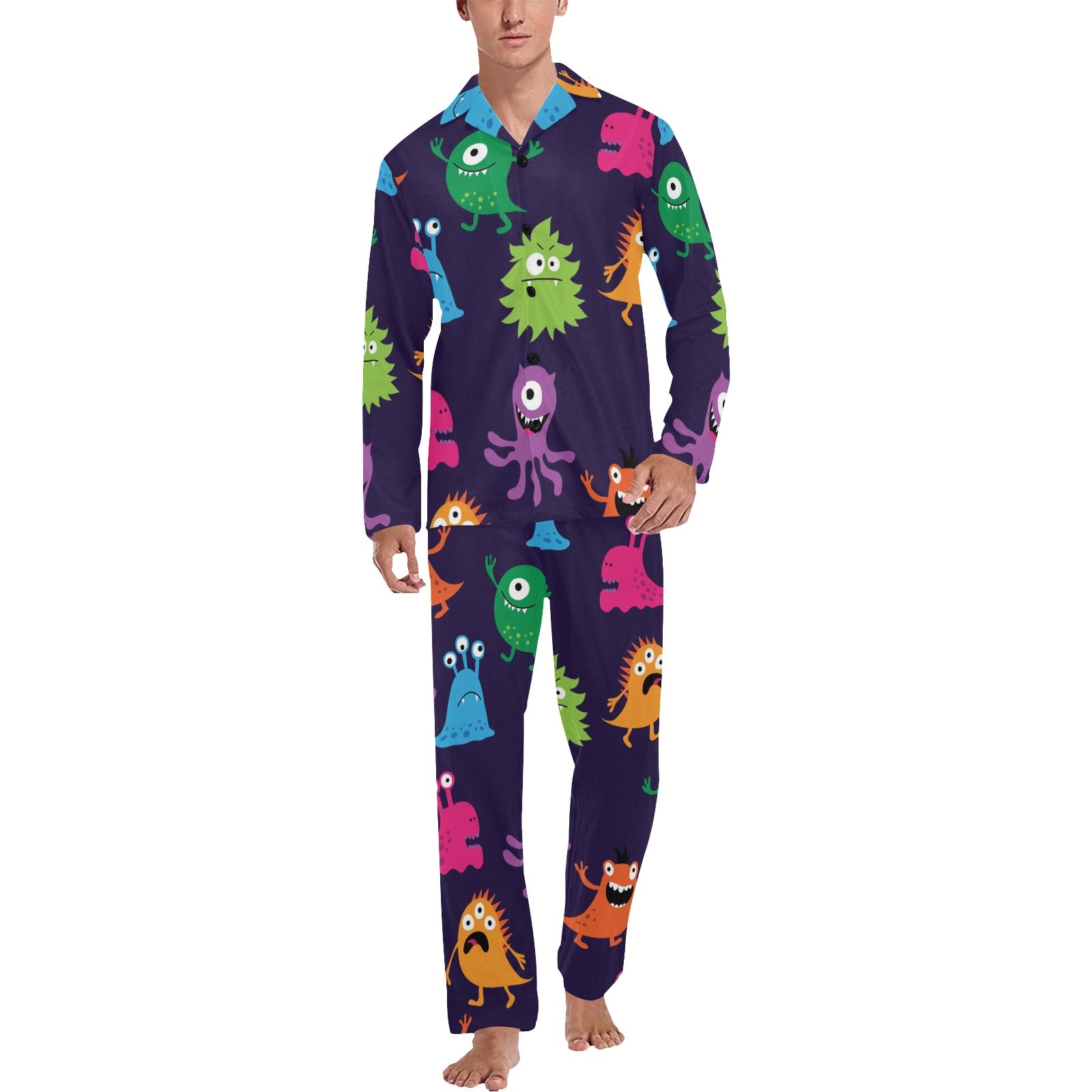 Monster Cartoon Pattern Print Design 02 Men's Long Pajama Set custom-made-to-order and handcrafted to the highest quality standards.