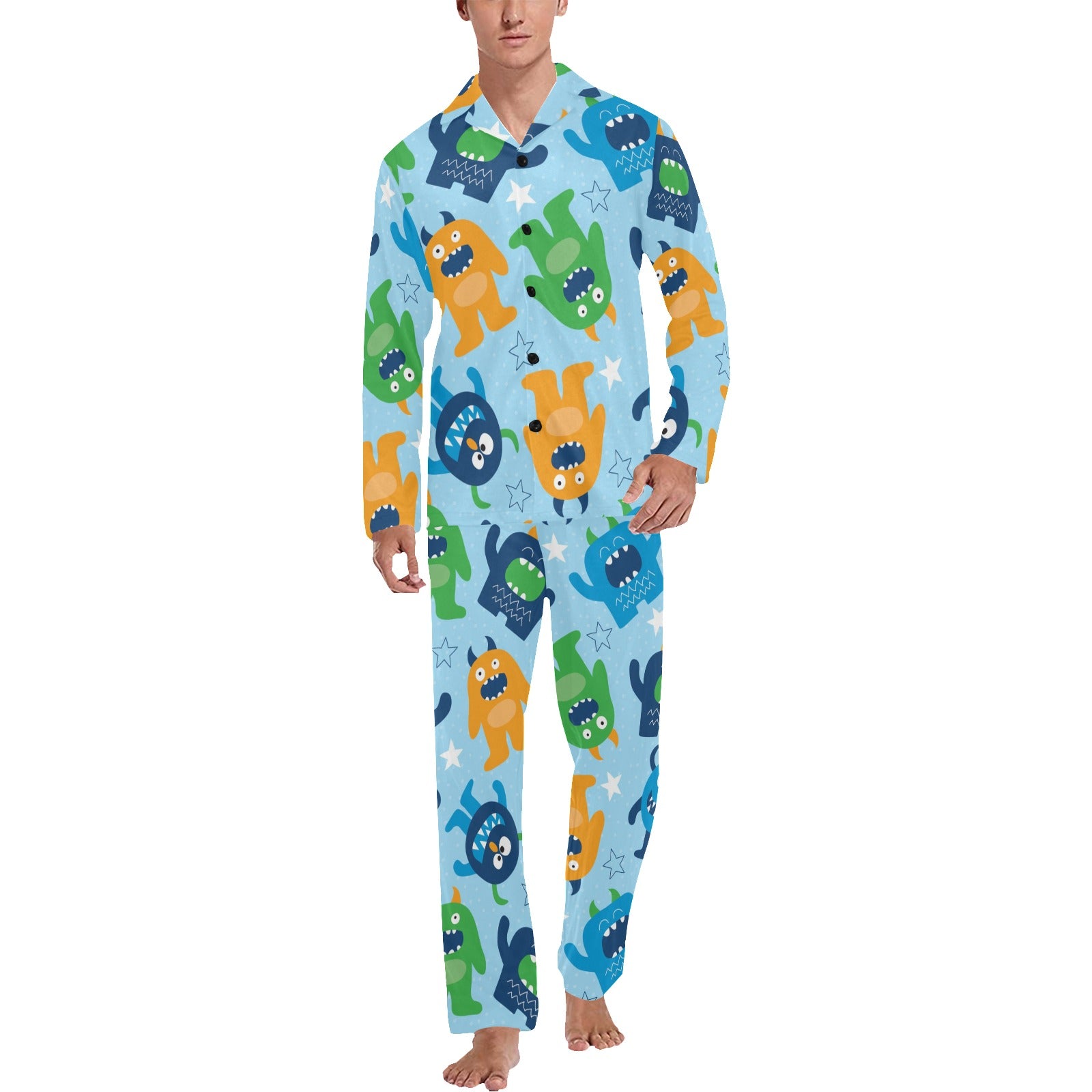 Monster Cartoon Pattern Print Design 04 Men's Long Pajama Set custom-made-to-order and handcrafted to the highest quality standards.