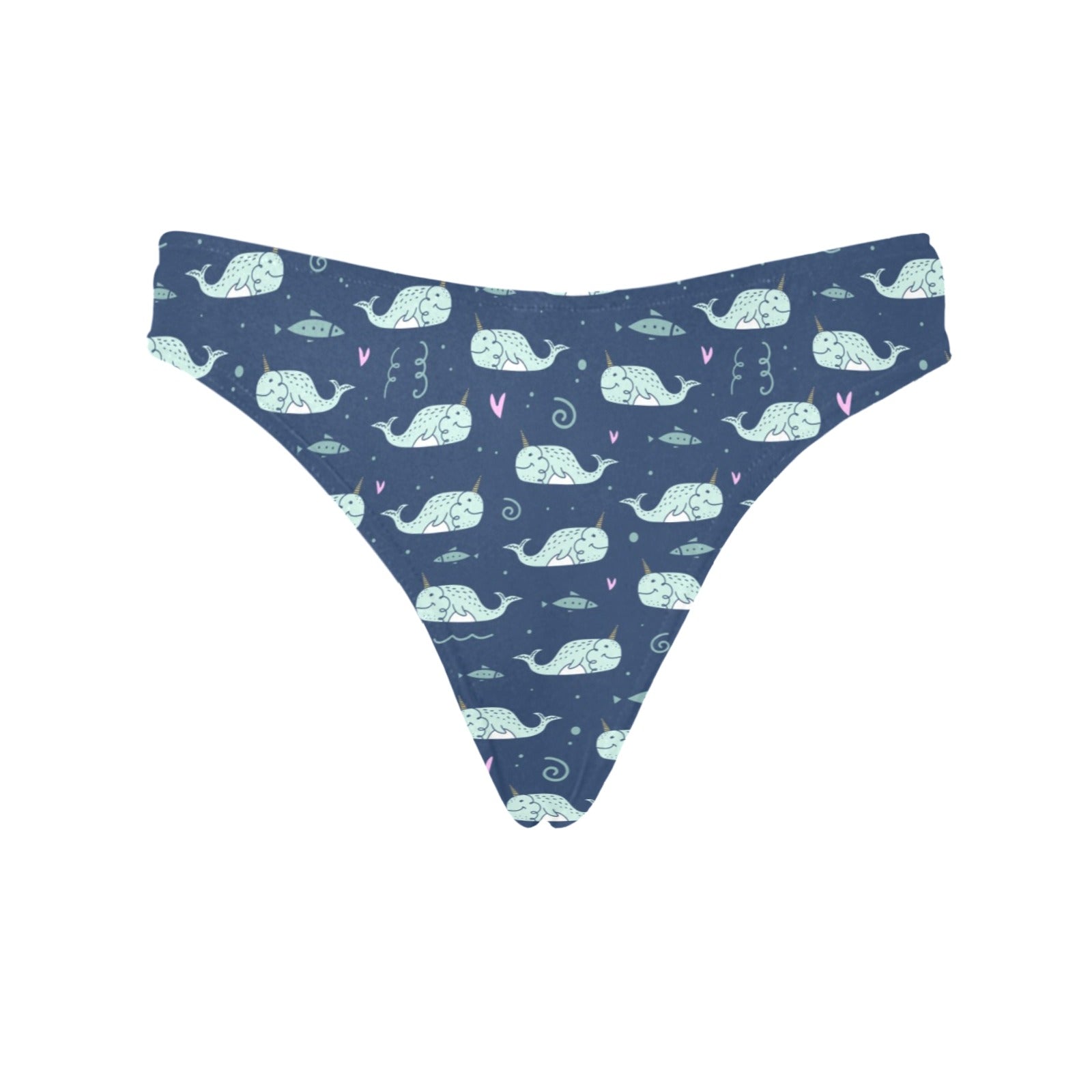 Narwhal Design Print Women's Thongsis custom-made-to-order and handcrafted to the highest quality standards.