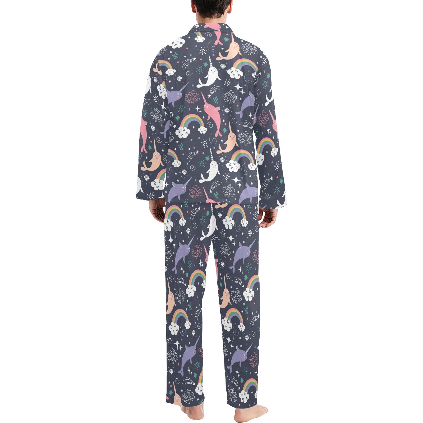Narwhal Pattern Print Design 01 Men's Long Pajama Set