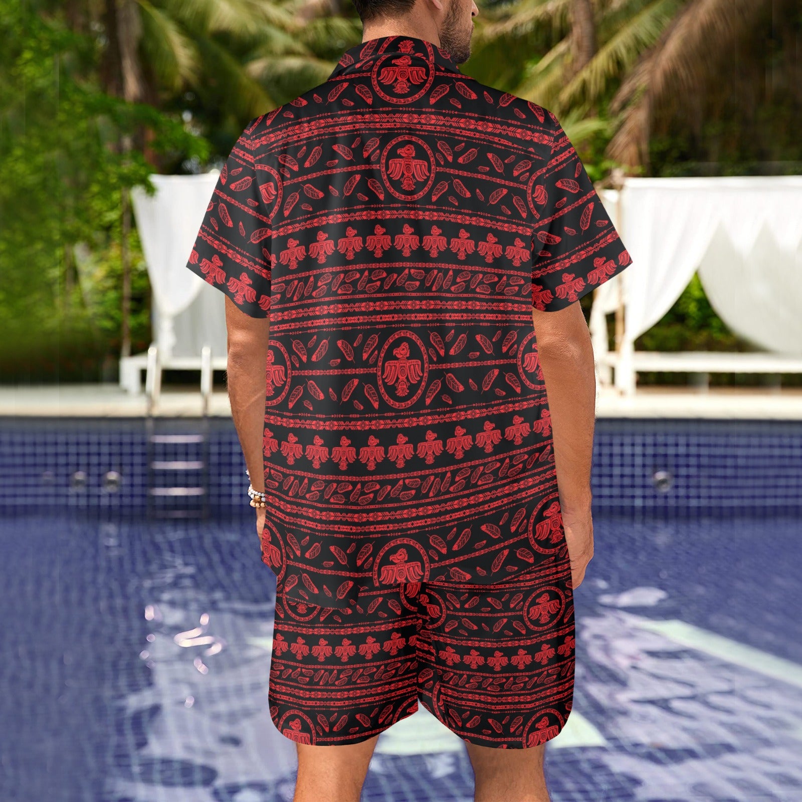 Native American Eagle Themed Print Men's Beach Shirt and Shorts Set. It is hand-cut and sewn just for your order! This process starts as soon as your order is placed and may have a processing time of 5-9 business days before it ships.