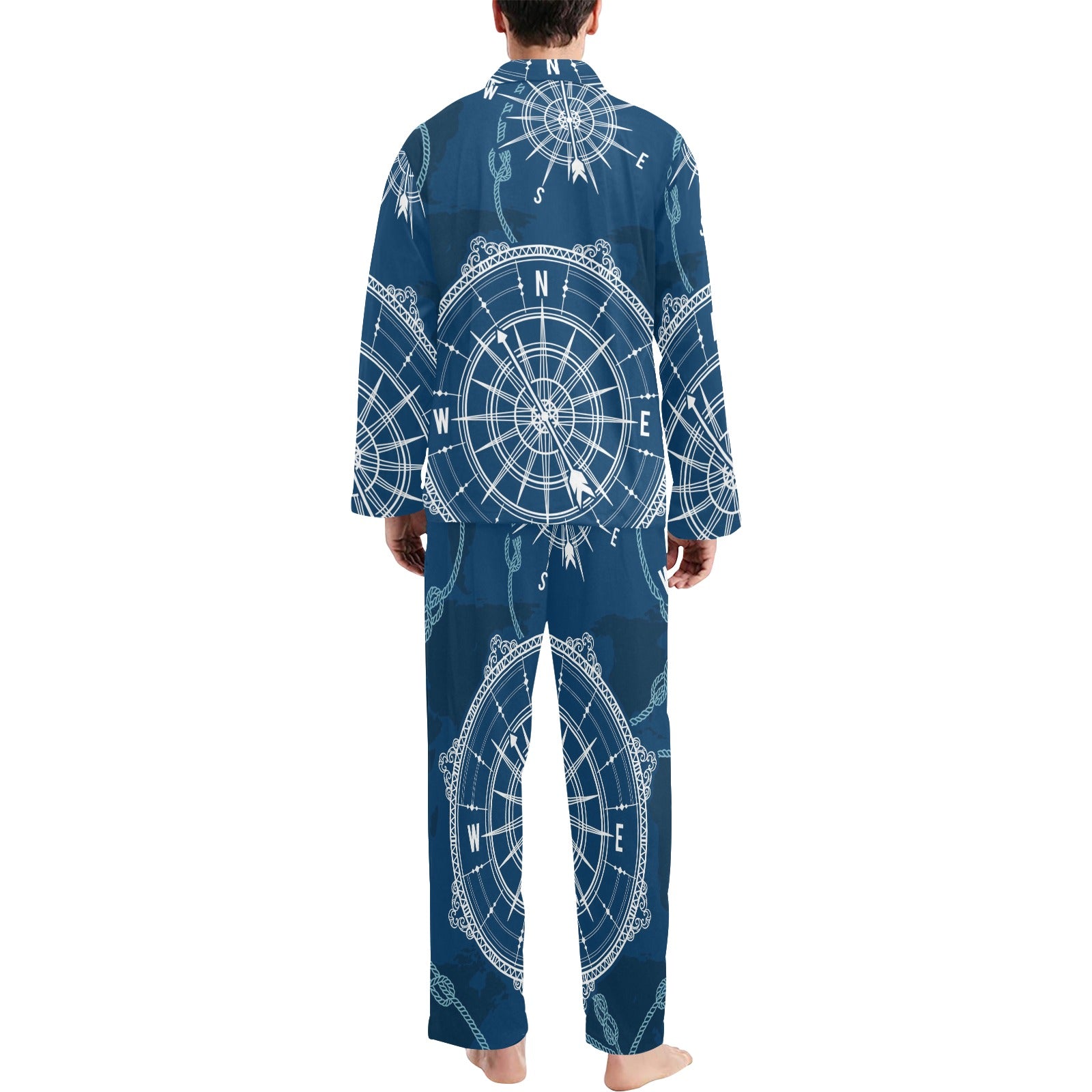 Nautical Compass Print Men's Long Pajama Set Made to Order Item. It is hand-cut and sewn just for your order! This process starts as soon as your order is placed and may have a processing time of 5-9 business days before it ships.