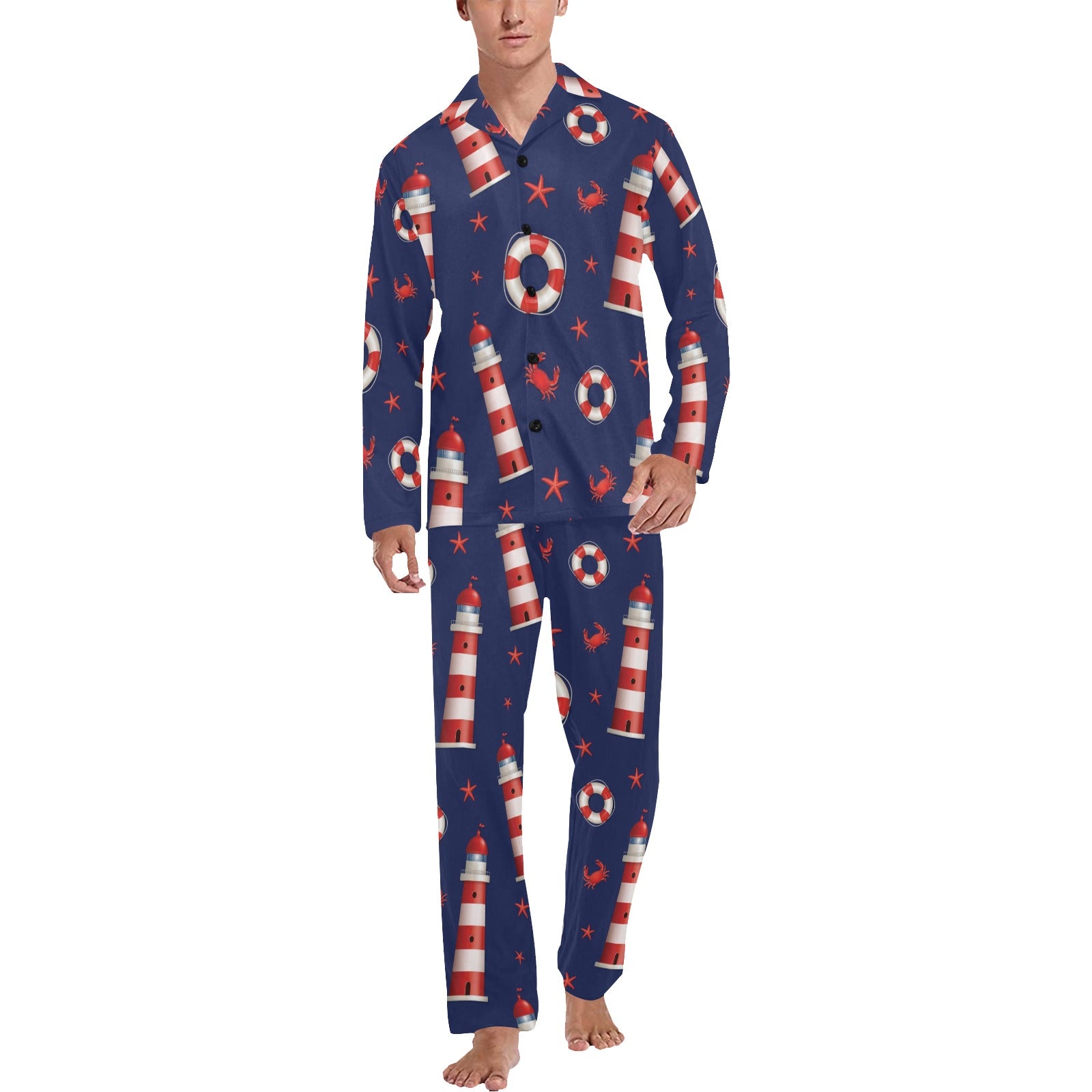 Nautical Pattern Print Design A03 Men's Long Pajama Set custom-made-to-order and handcrafted to the highest quality standards.