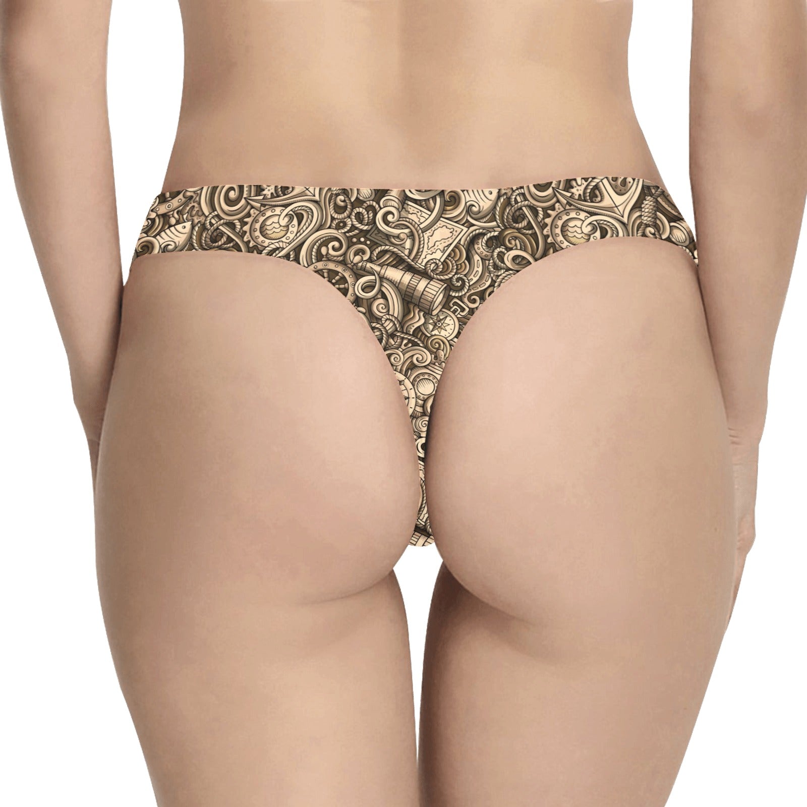 Nautical Tattoo Design Themed Print Women's Thongsis custom-made-to-order and handcrafted to the highest quality standards.