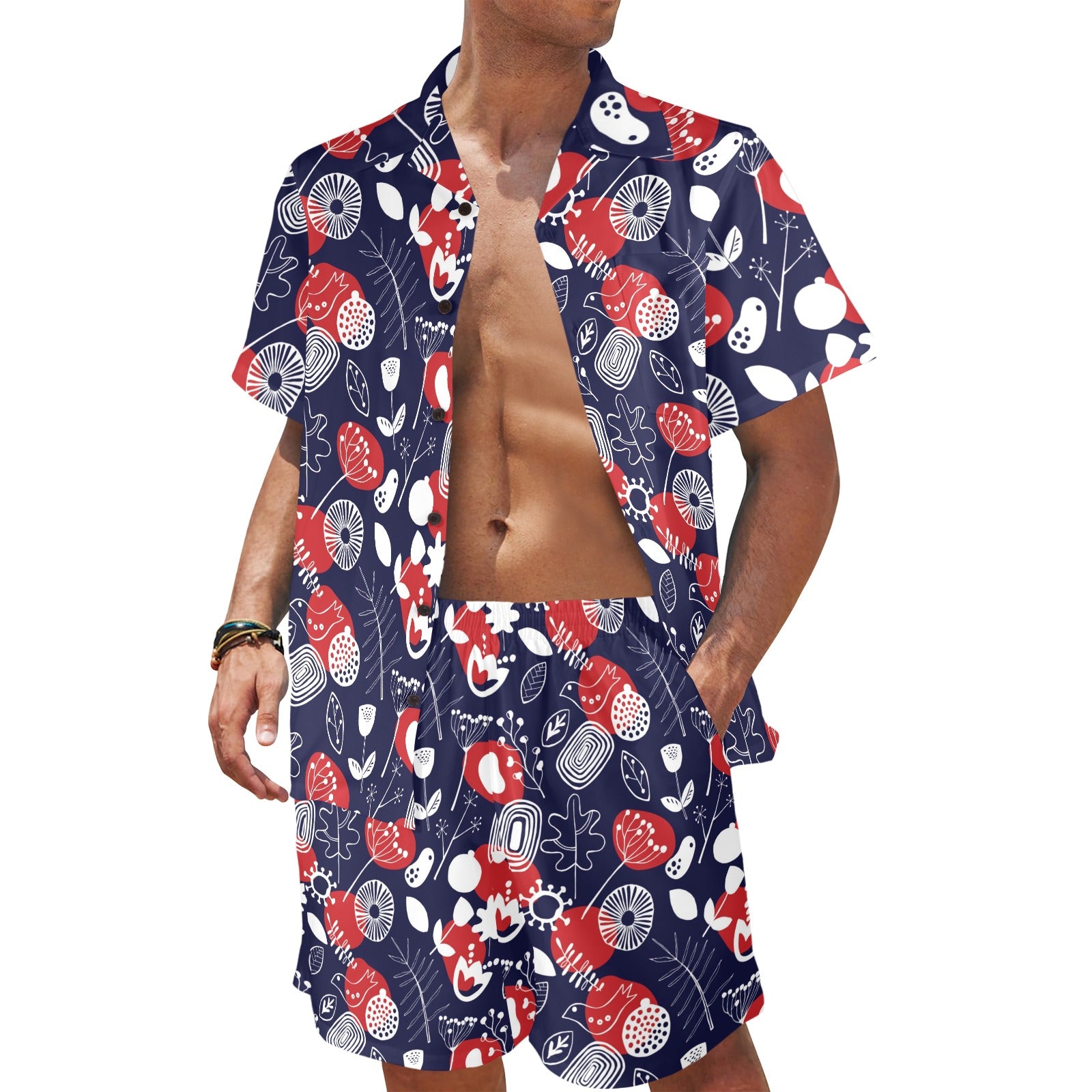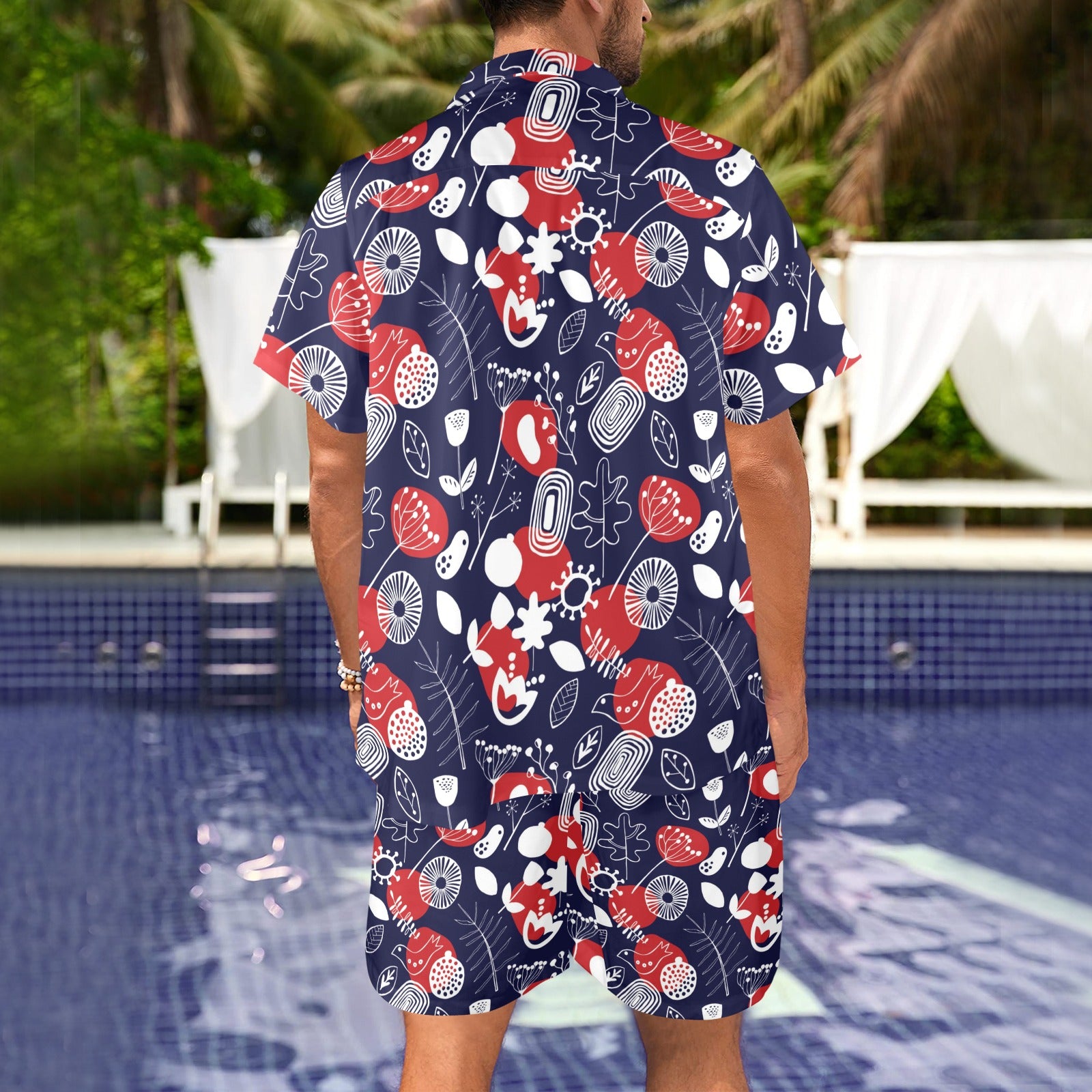 Nordic Pattern Print Design A02 Men's Beach Shirt and Shorts Set
